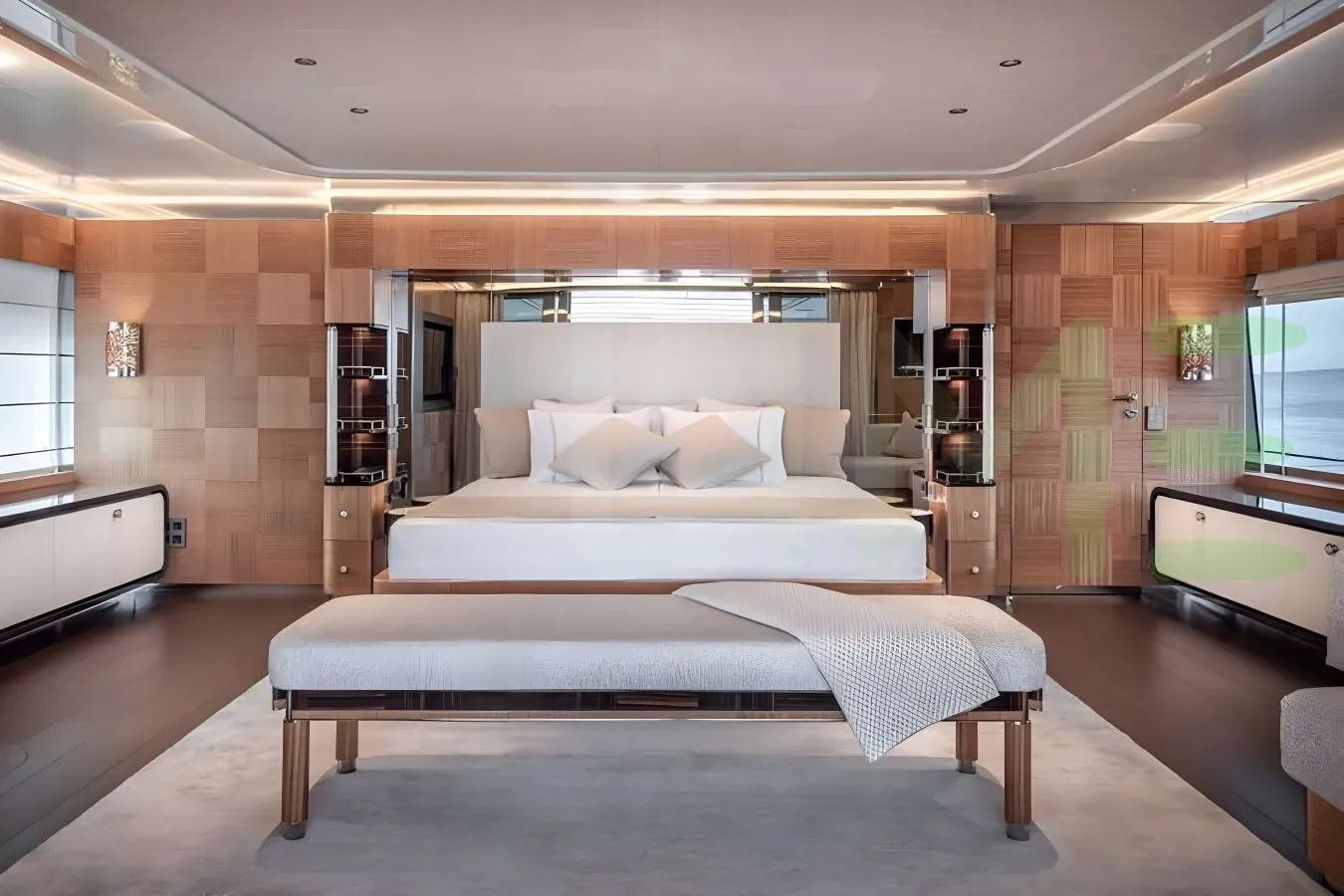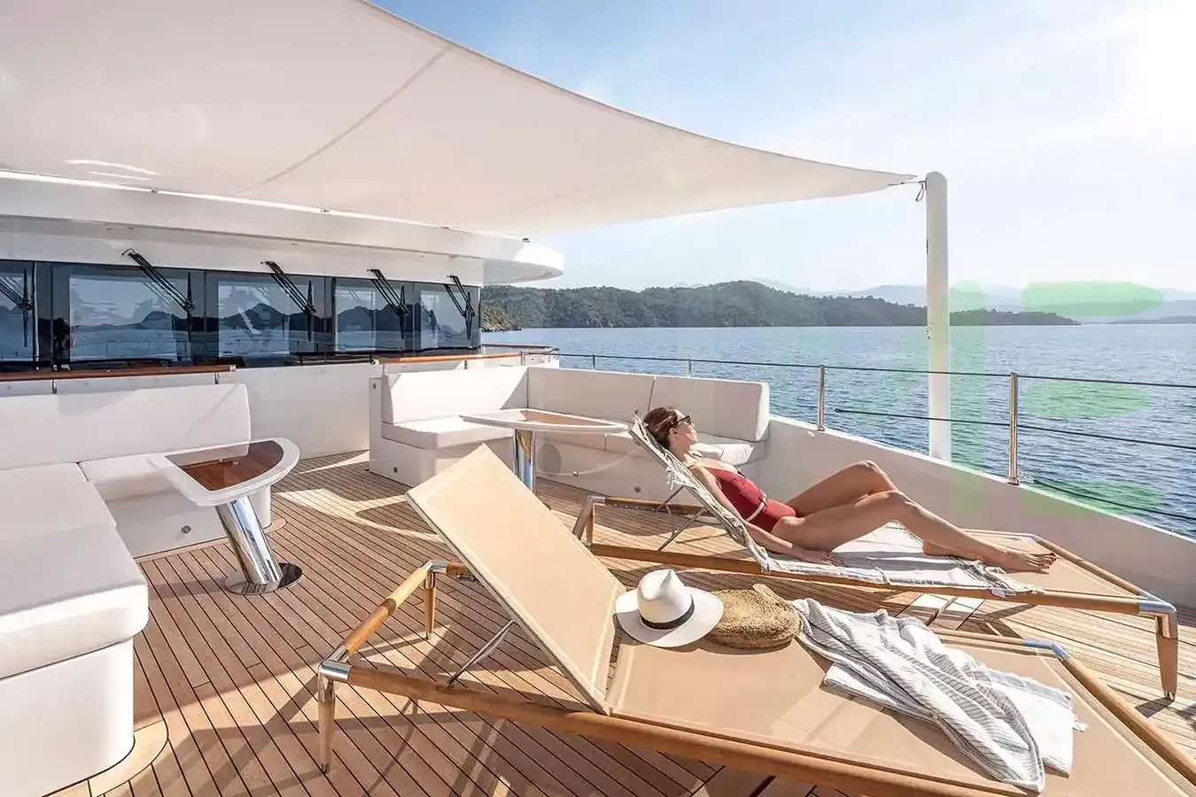 With a gross tonnage of 419, the SUNRISE yacht for charter provides ample interior space for enjoyment. SUNRISE offers accommodations for up to 12 guests in 5 lavishly appointed staterooms. She can also carry up to 9 crew onboard, including the Captain, to ensure a relaxed luxury yacht charter experience. The interior design by Hot Lab exudes a sense of luxury, seamlessly blending comfort with style.