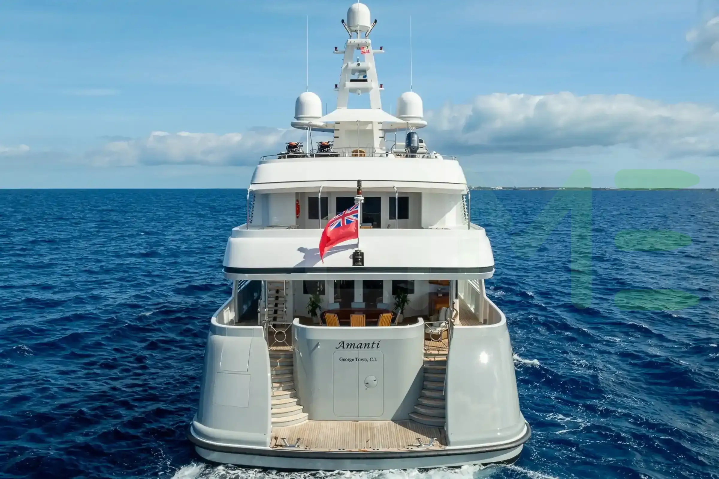 Her features include an elevator, gym, deck jacuzzi, WiFi and air conditioning.