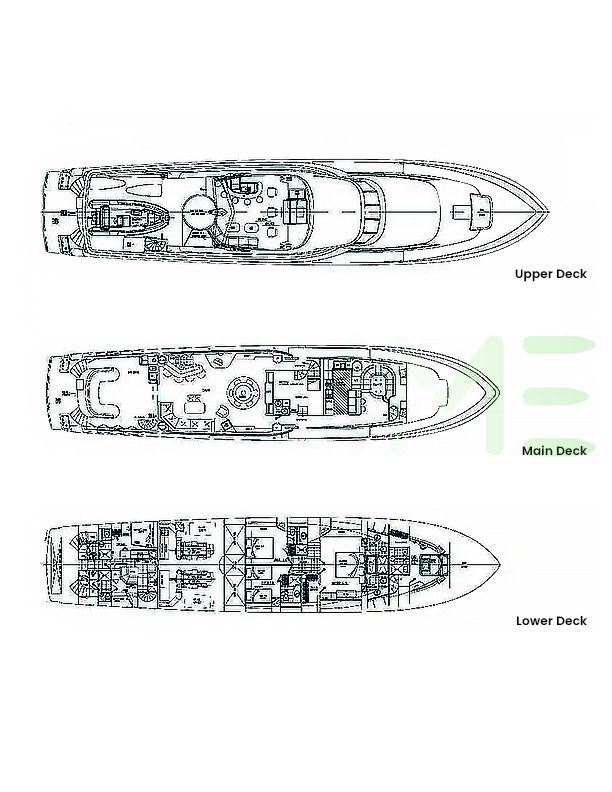 Request plans that include the layout of staterooms, guest areas, and outdoor spaces, as well as crew quarters and work areas.