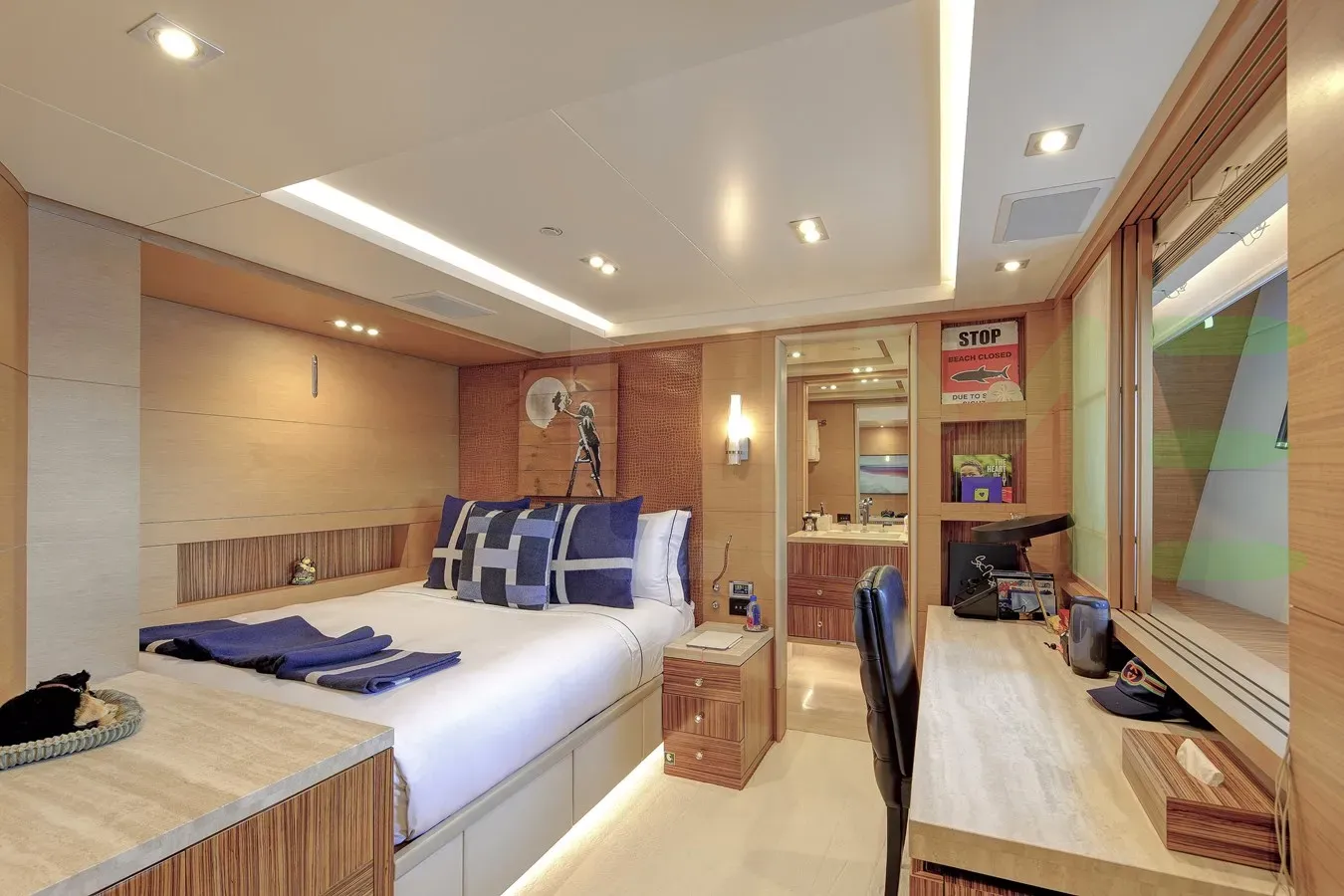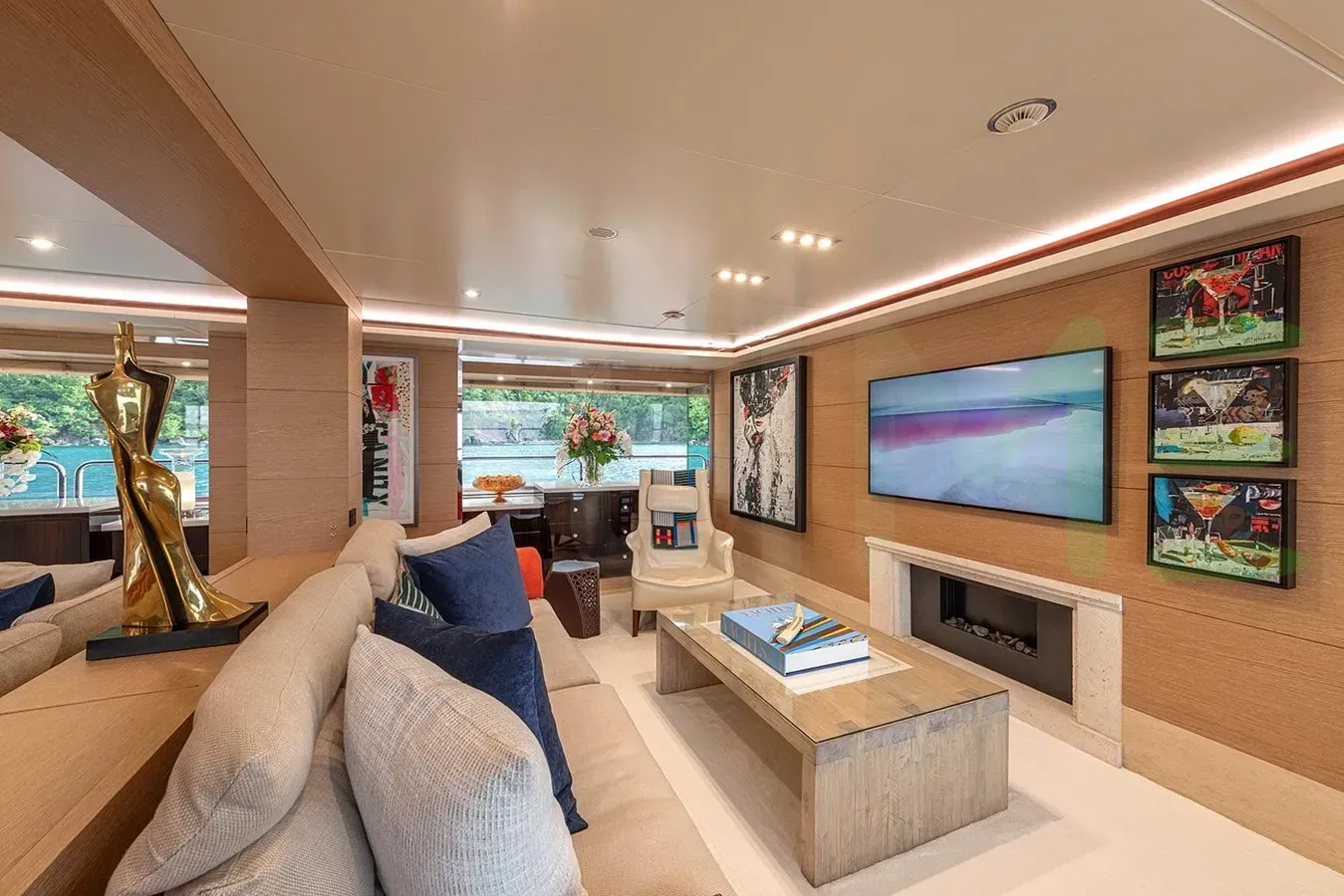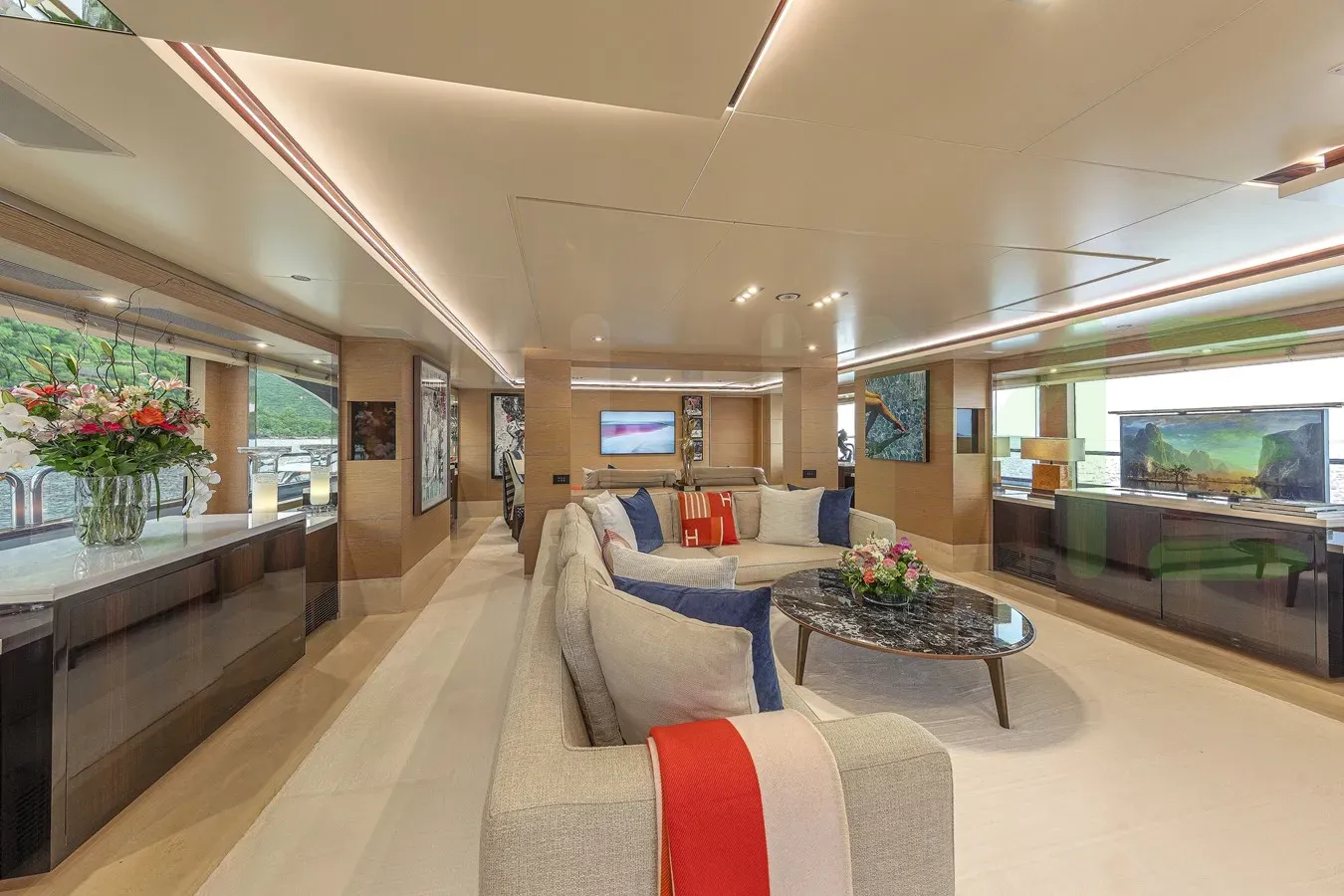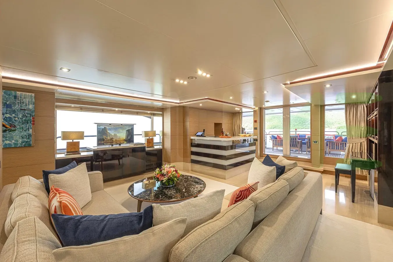With a gross tonnage of 456, the SUR LA MER yacht for charter provides ample interior space for enjoyment. SUR LA MER offers accommodations for up to 12 guests in 5 lavishly appointed staterooms. She can also carry up to 10 crew onboard, including the Captain, to ensure a relaxed luxury yacht charter experience. The interior design by Molori Design exudes a sense of luxury, seamlessly blending comfort with style.