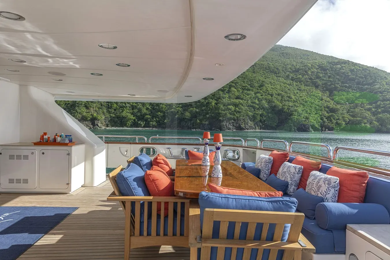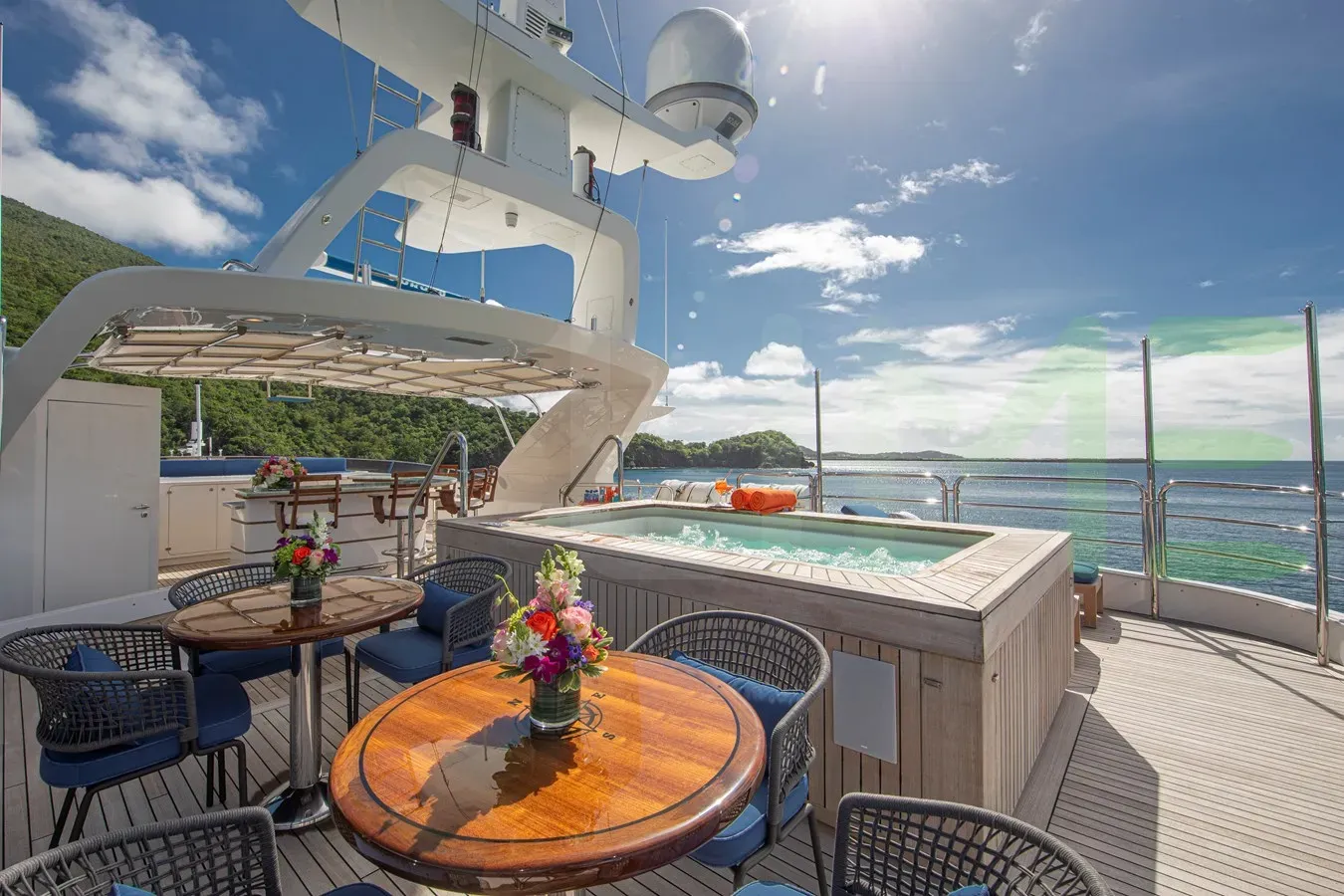 Her features include satellite communications, gym, deck jacuzzi, WiFi and air conditioning.