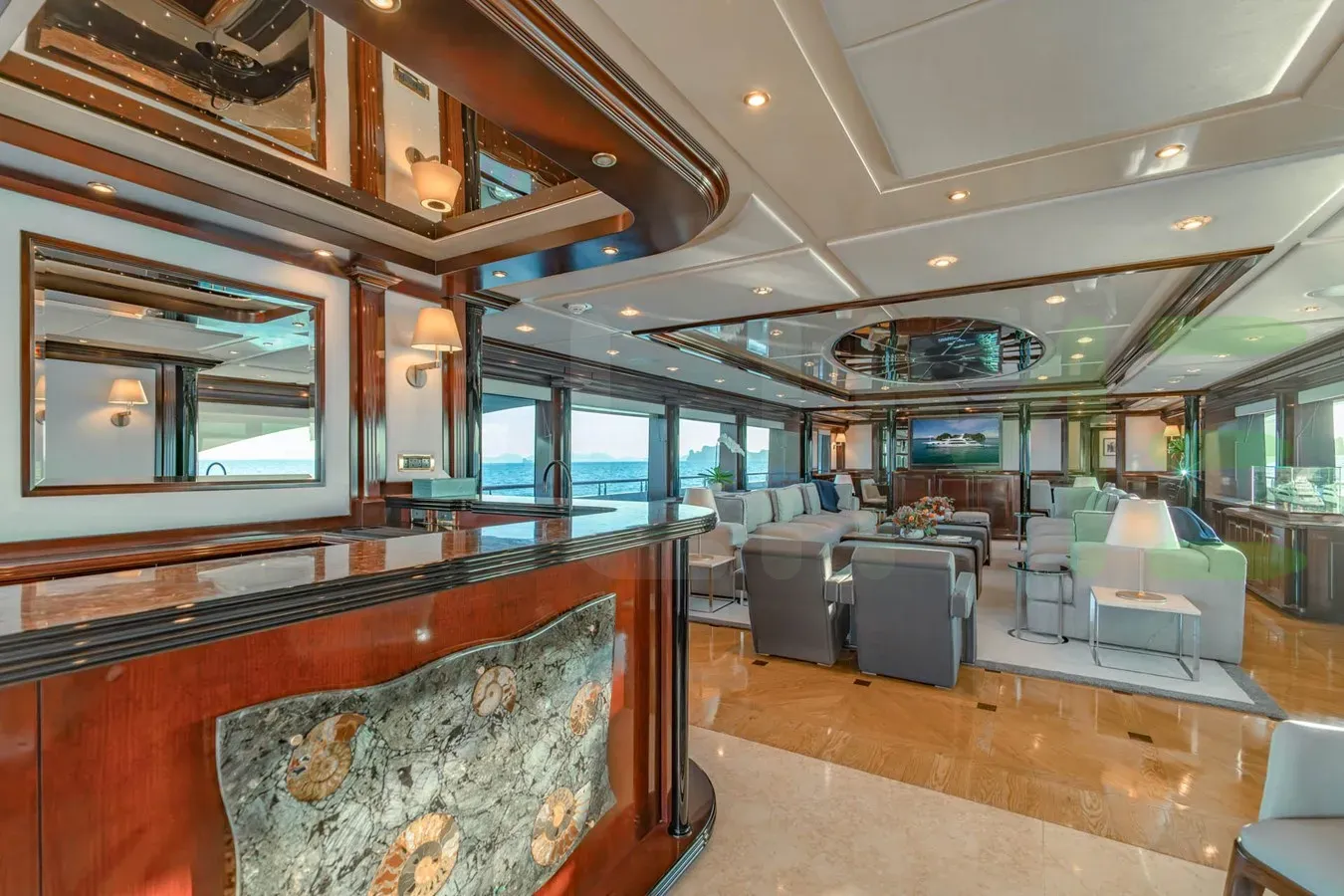 With a gross tonnage of 478, the SWEET CAROLINE II yacht for charter provides ample interior space for enjoyment. SWEET CAROLINE II offers accommodations for up to 12 guests in 7 lavishly appointed staterooms. She can also carry up to 9 crew onboard, including the Captain, to ensure a relaxed luxury yacht charter experience. The interior design by James McFarlane exudes a sense of luxury, seamlessly blending comfort with style.