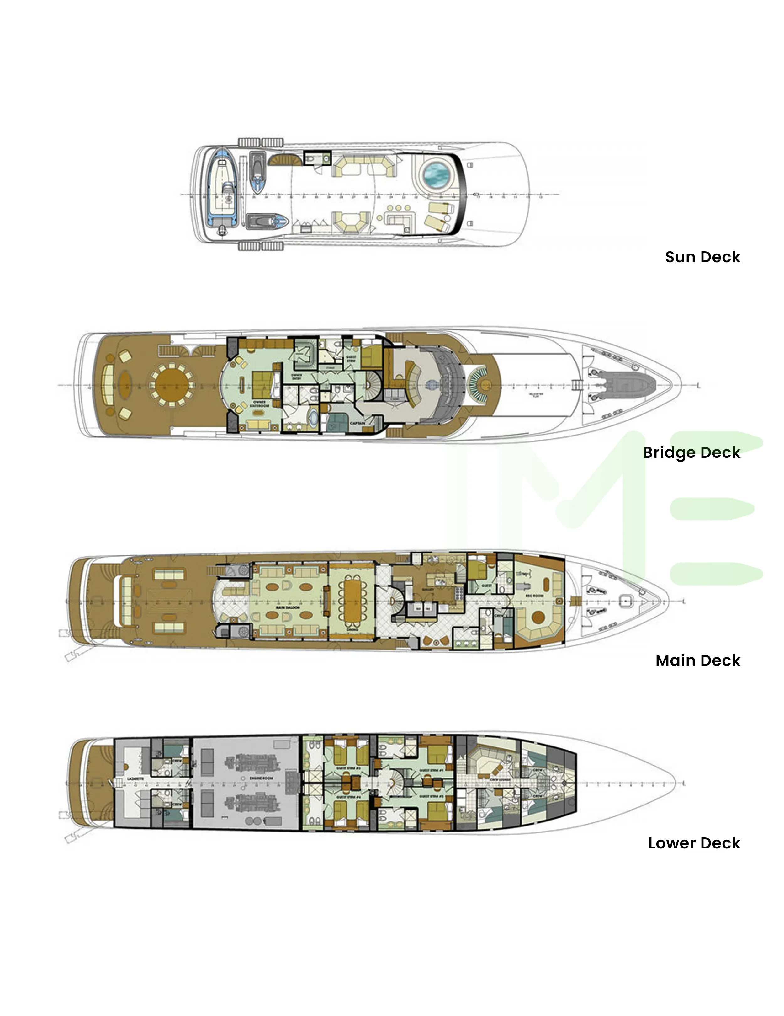 Request plans that include the layout of staterooms, guest areas, and outdoor spaces, as well as crew quarters and work areas.