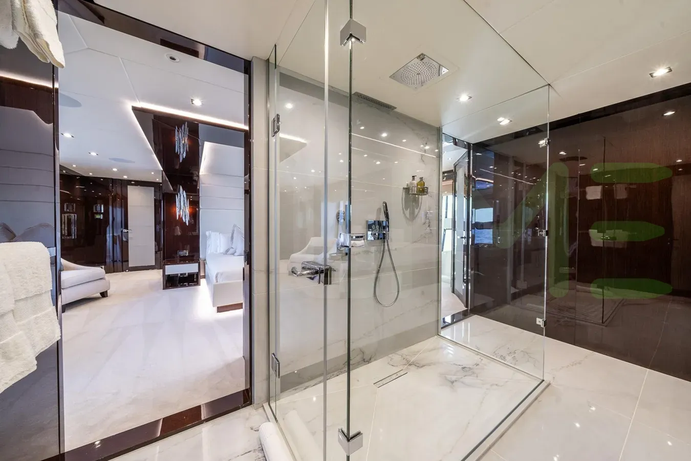 With a gross tonnage of 341, the SWEET ESCAPE yacht for charter provides ample interior space for enjoyment. SWEET ESCAPE offers accommodations for up to 10 guests in 5 lavishly appointed staterooms. She can also carry up to 8 crew onboard, including the Captain, to ensure a relaxed luxury yacht charter experience. The interior design by Sunseeker exudes a sense of luxury, seamlessly blending comfort with style.