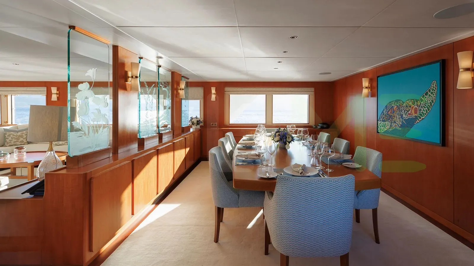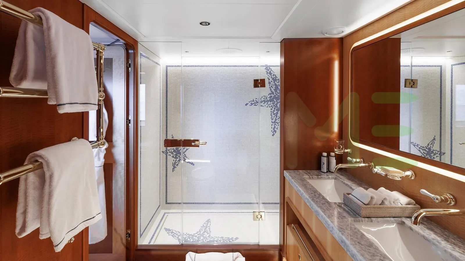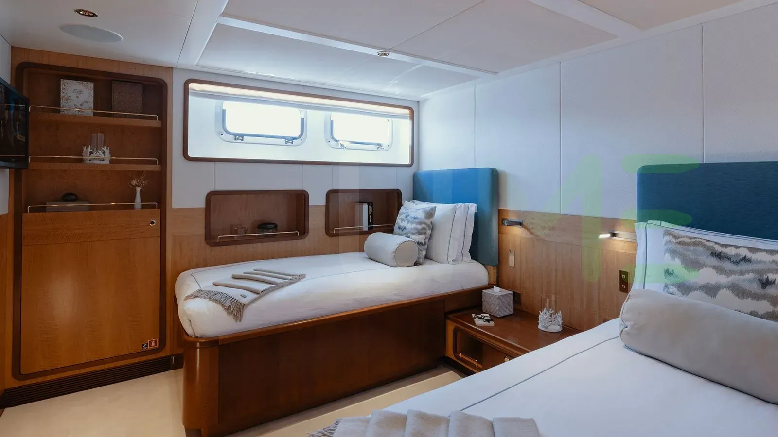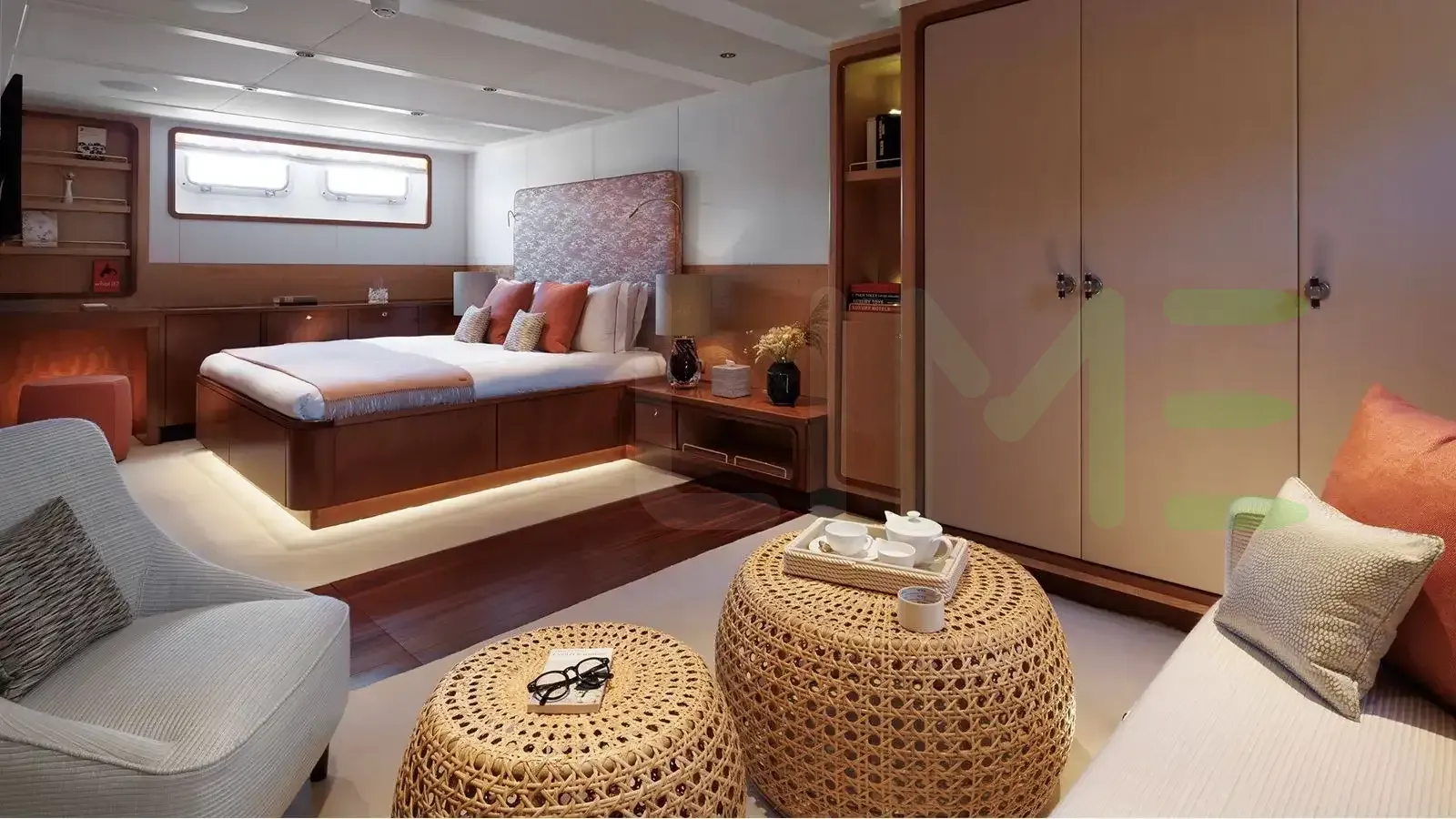 With a gross tonnage of 347, the SYNTHESIS 66 yacht for charter provides ample interior space for enjoyment. SYNTHESIS 66 offers accommodations for up to 10 guests in 5 lavishly appointed staterooms. She can also carry up to 8 crew onboard, including the Captain, to ensure a relaxed luxury yacht charter experience. The interior design by Larvor, Boutsen Design exudes a sense of luxury, seamlessly blending comfort with style.