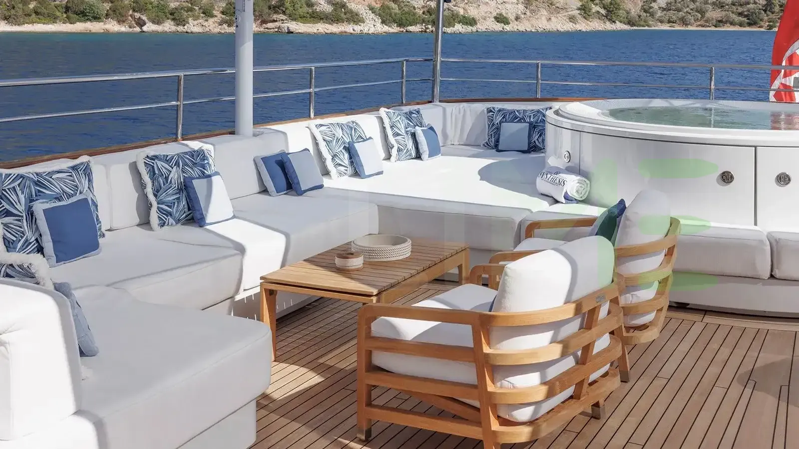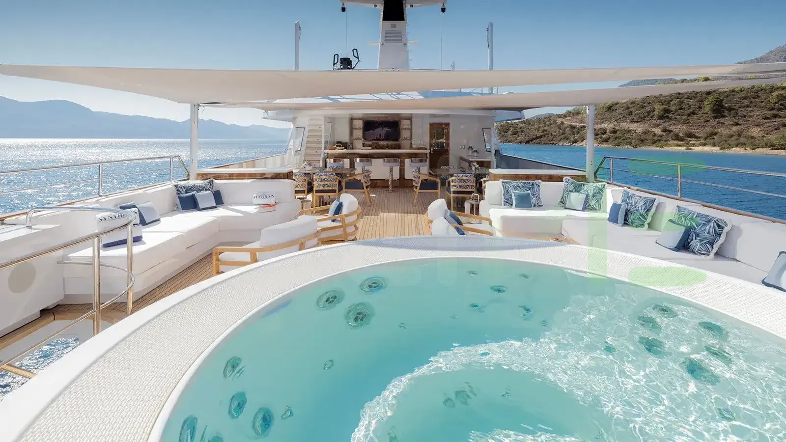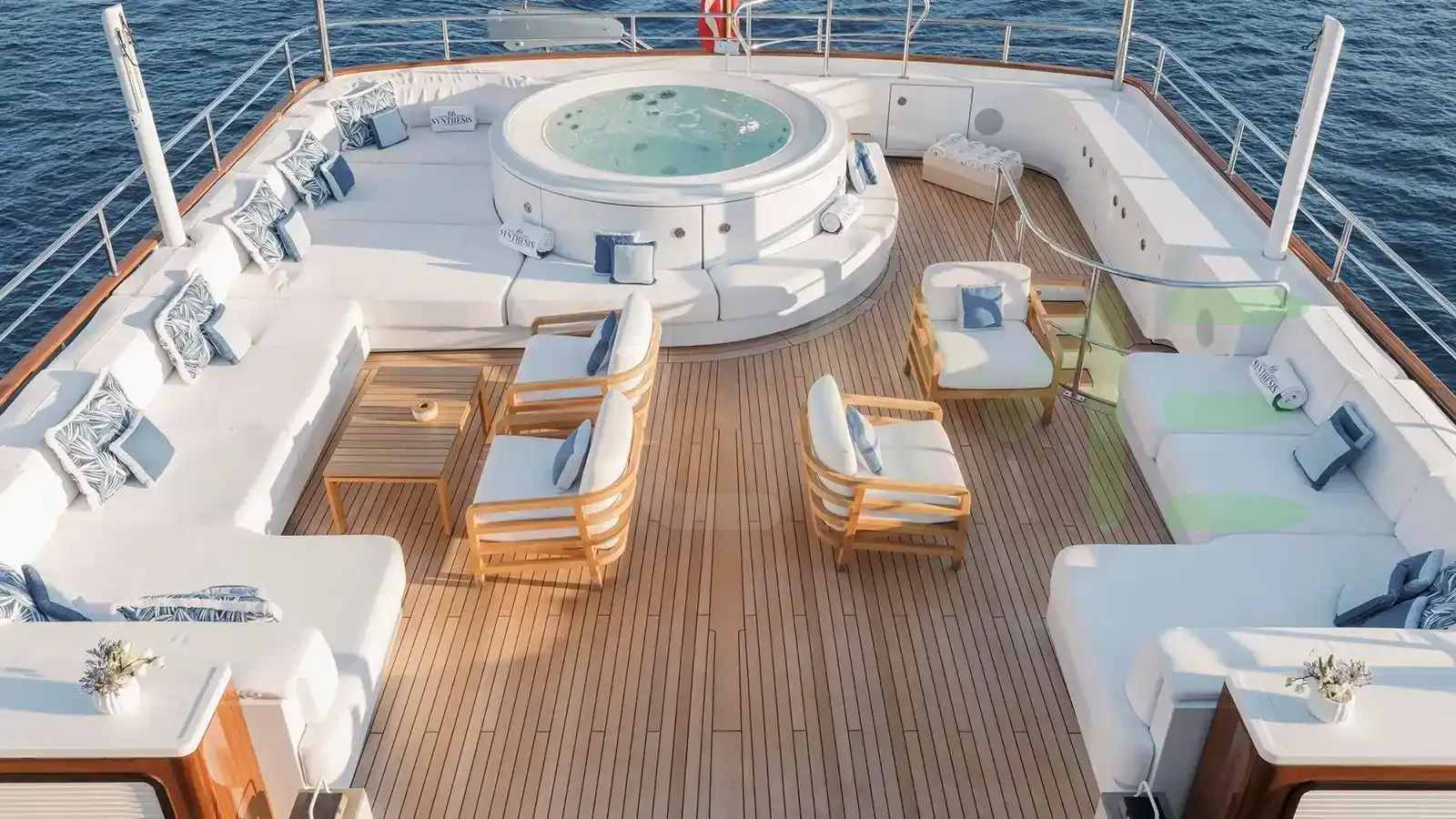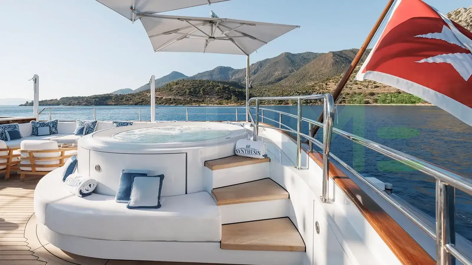 A charter on Synthesis 66 is comfortable and convenient thanks to the provided amenities, notably a deck jacuzzi, perfect to enjoy the scenery with your favourite drink in hand.