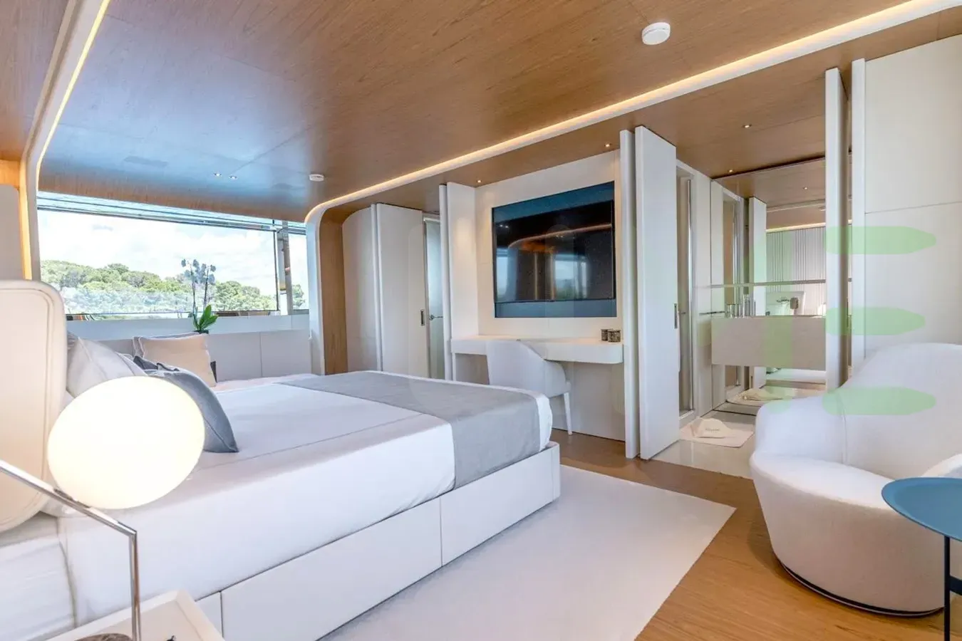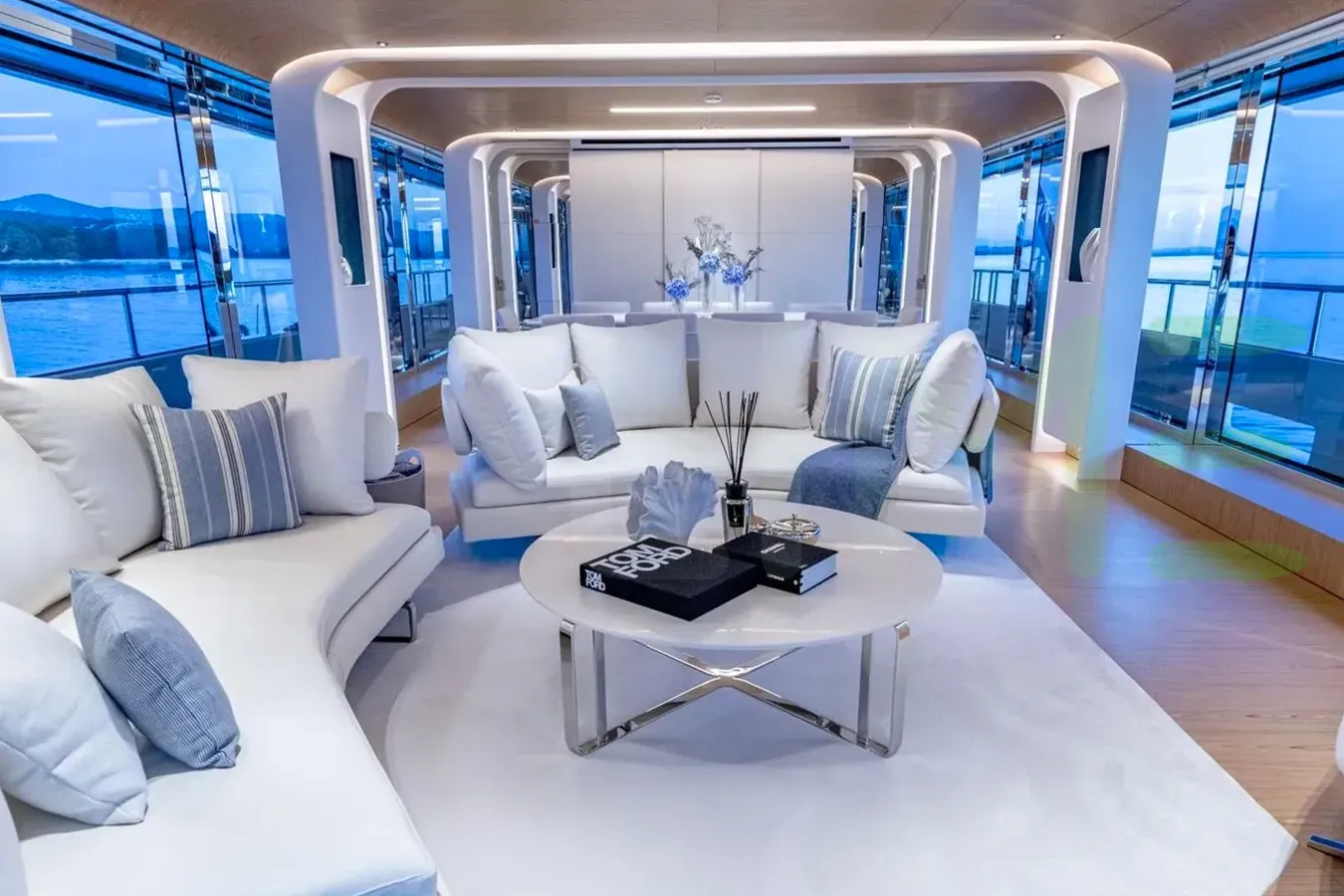 With a gross tonnage of 298, the TAMALI yacht for charter provides ample interior space for enjoyment. TAMALI offers accommodations for up to 10 guests . She can also carry up to 7 crew onboard, including the Captain, to ensure a relaxed luxury yacht charter experience. The interior design by Lazzarini & Pickering exudes a sense of luxury, seamlessly blending comfort with style.