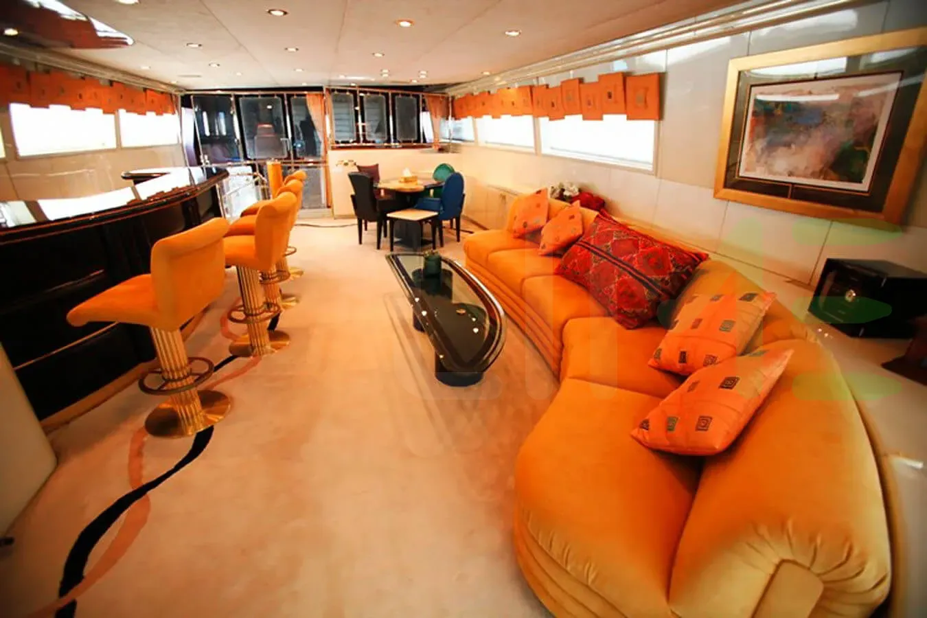 The exterior, designed by Trident, Baglietto S.p.A., captures your attention with beautiful lines and impeccable craftsmanship. Whether you're lounging on the spacious decks or enjoying water sports in a secluded anchorage, the TAMTEEN yacht for charter, built of GRP, offers a wealth of opportunities for relaxation and adventure.
