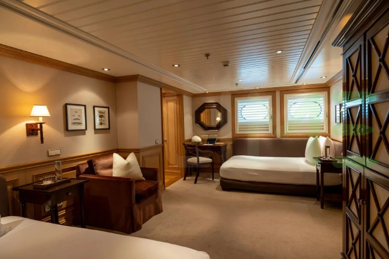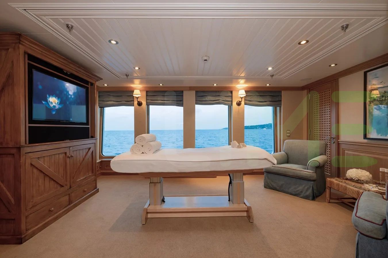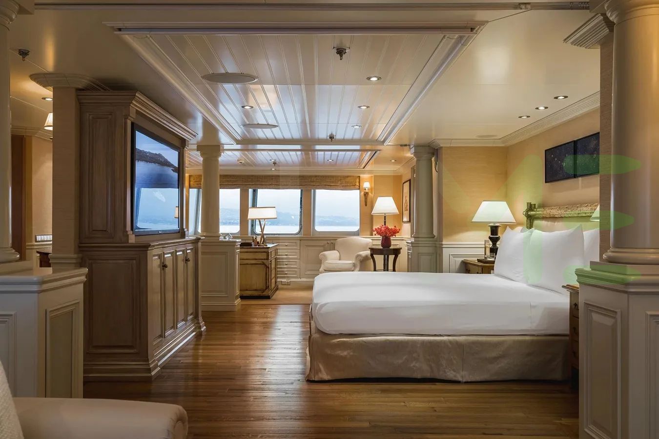 With a gross tonnage of 3,229, the TATOOSH yacht for charter provides ample interior space for enjoyment. TATOOSH offers accommodations for up to 20 guests in 11 lavishly appointed staterooms. She can also carry up to 31 crew onboard, including the Captain, to ensure a relaxed luxury yacht charter experience. The interior design by Terence Disdale Design exudes a sense of luxury, seamlessly blending comfort with style.
