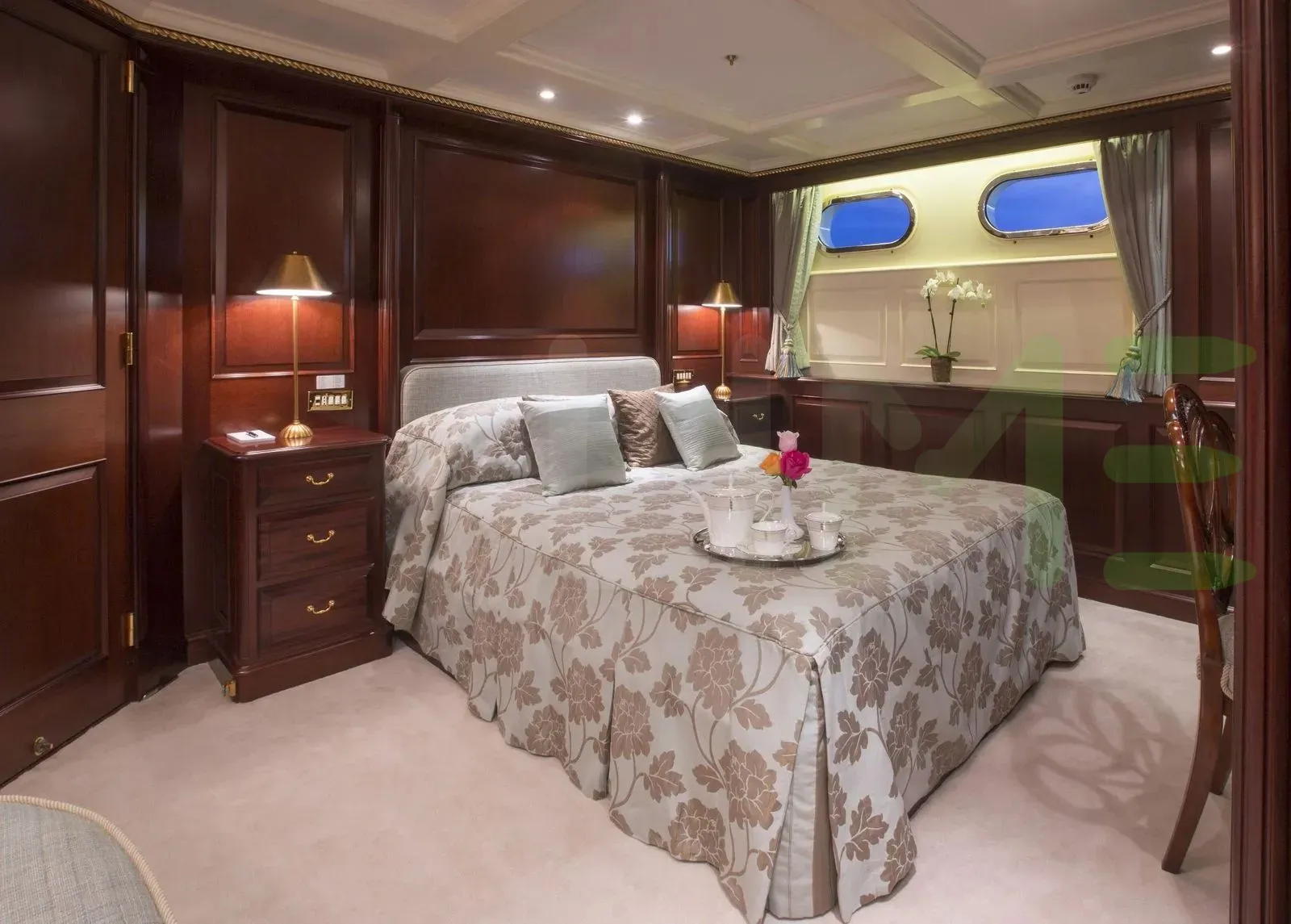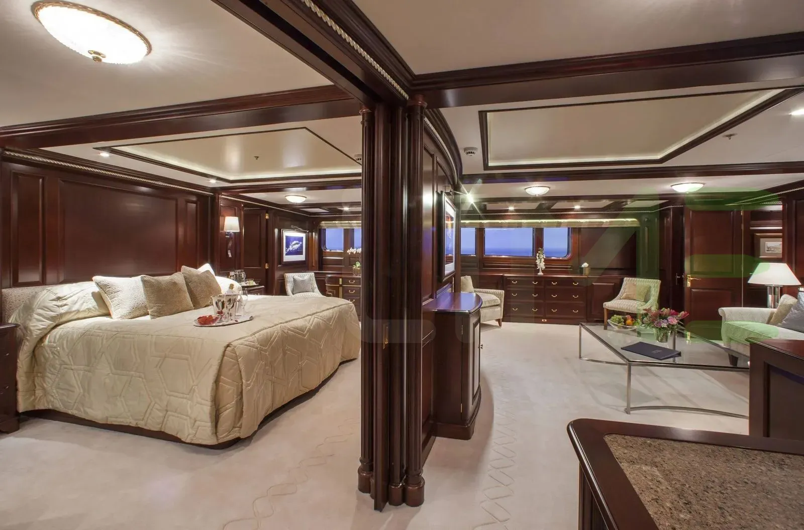 With a gross tonnage of 487, the TELEOST yacht for charter provides ample interior space for enjoyment. TELEOST offers accommodations for up to 12 guests in 5 lavishly appointed staterooms. She can also carry up to 10 crew onboard, including the Captain, to ensure a relaxed luxury yacht charter experience. The interior design by John Munford Design exudes a sense of luxury, seamlessly blending comfort with style.