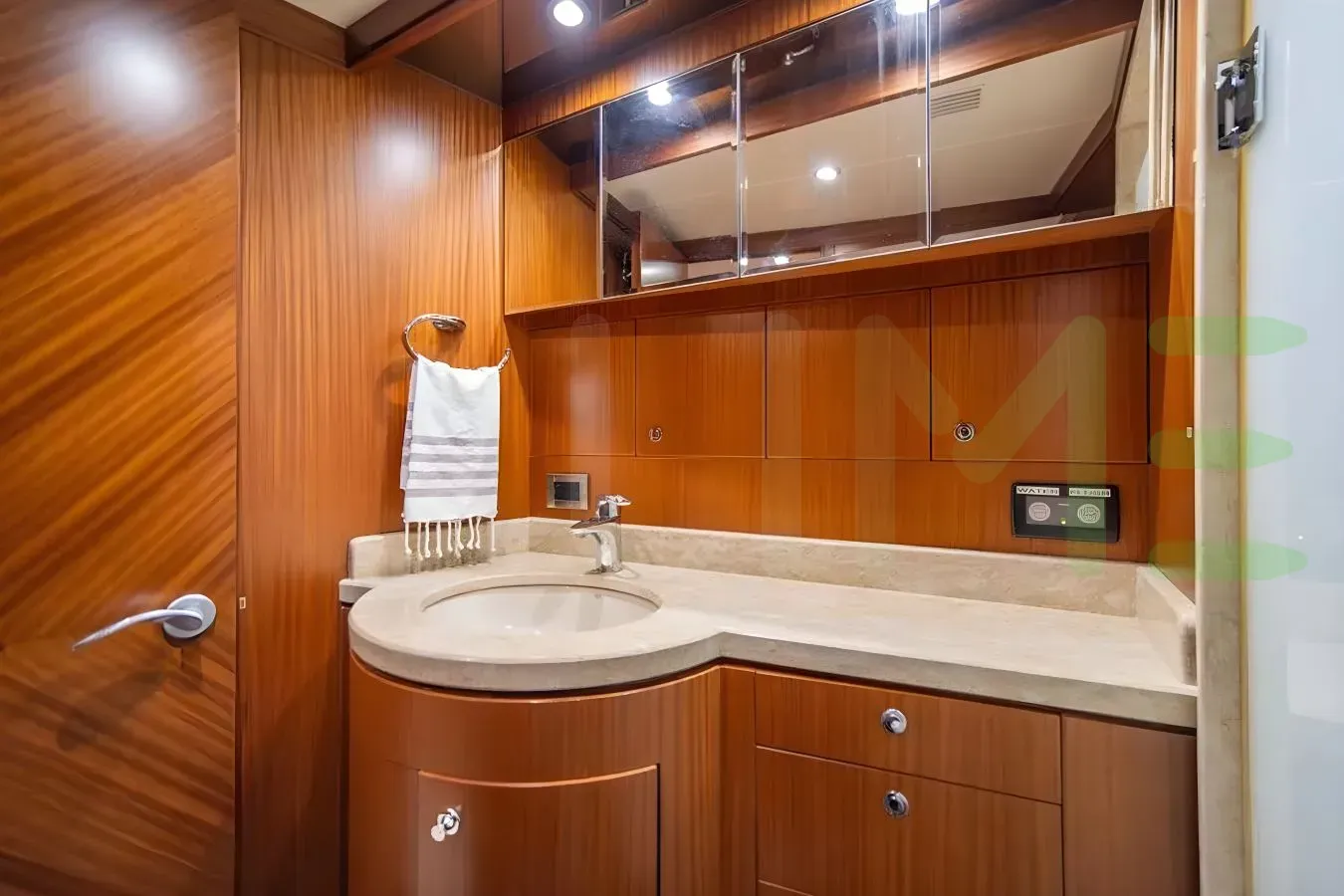The exterior, designed by Ocean Alexander, captures your attention with beautiful lines and impeccable craftsmanship. Whether you're lounging on the spacious decks or enjoying water sports in a secluded anchorage, the TEMPTRESS yacht for charter, built of GRP, offers a wealth of opportunities for relaxation and adventure.