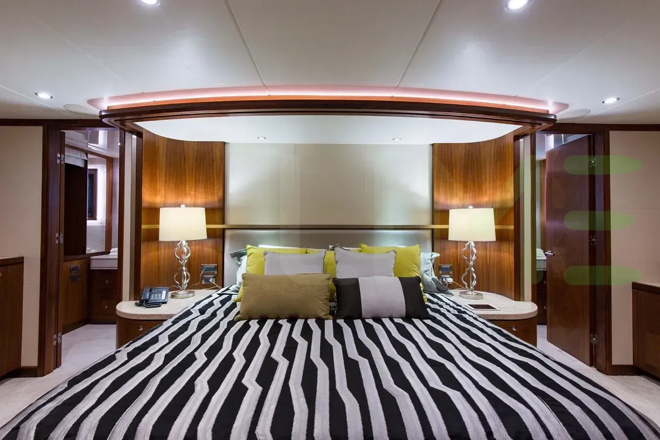 With a gross tonnage of 197, the THE KING AND I yacht for charter provides ample interior space for enjoyment. THE KING AND I offers accommodations for up to 8 guests in 4 lavishly appointed staterooms. She can also carry up to 5 crew onboard, including the Captain, to ensure a relaxed luxury yacht charter experience. The interior design by Evan K Marshall exudes a sense of luxury, seamlessly blending comfort with style.