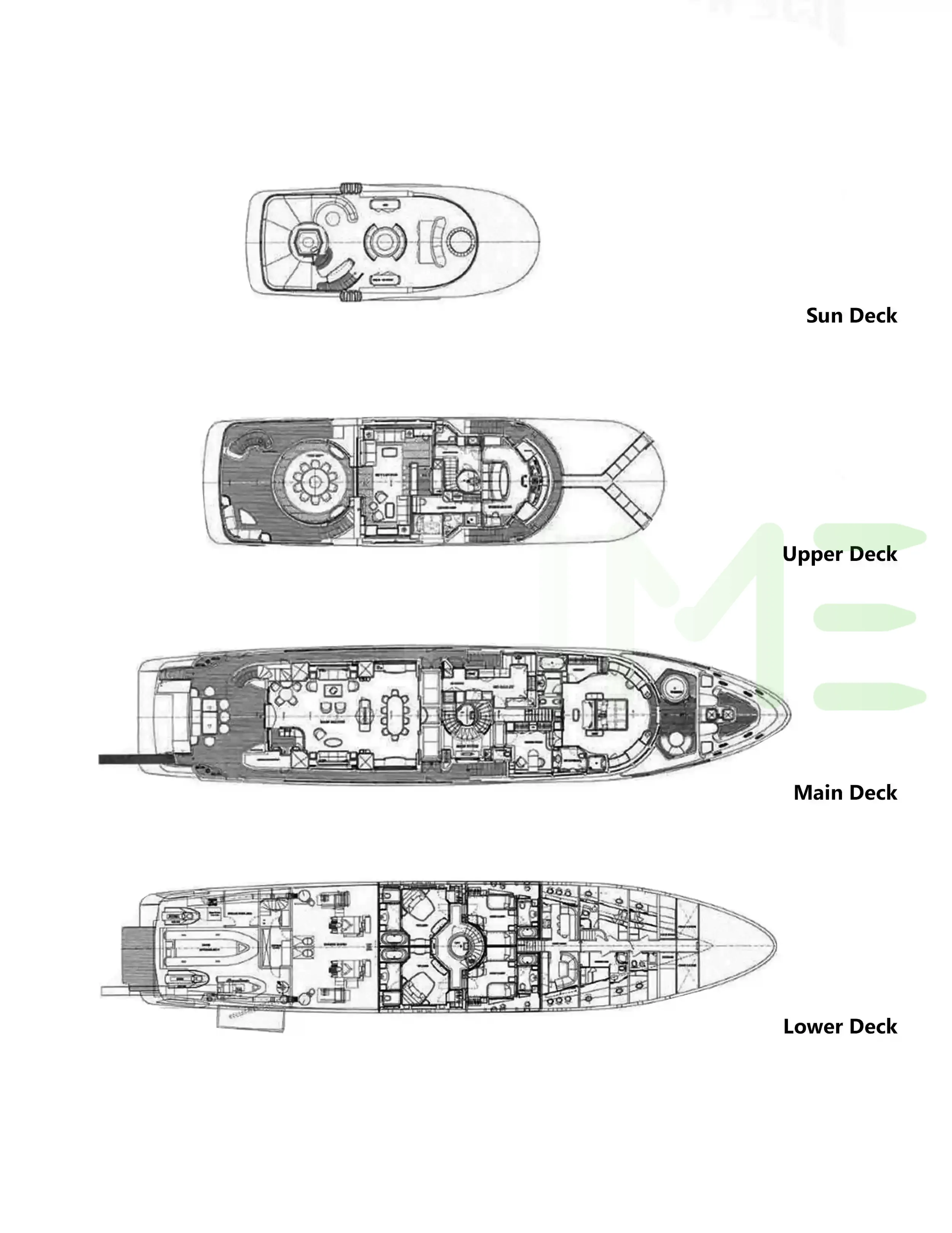 Request plans that include the layout of staterooms, guest areas, and outdoor spaces, as well as crew quarters and work areas.