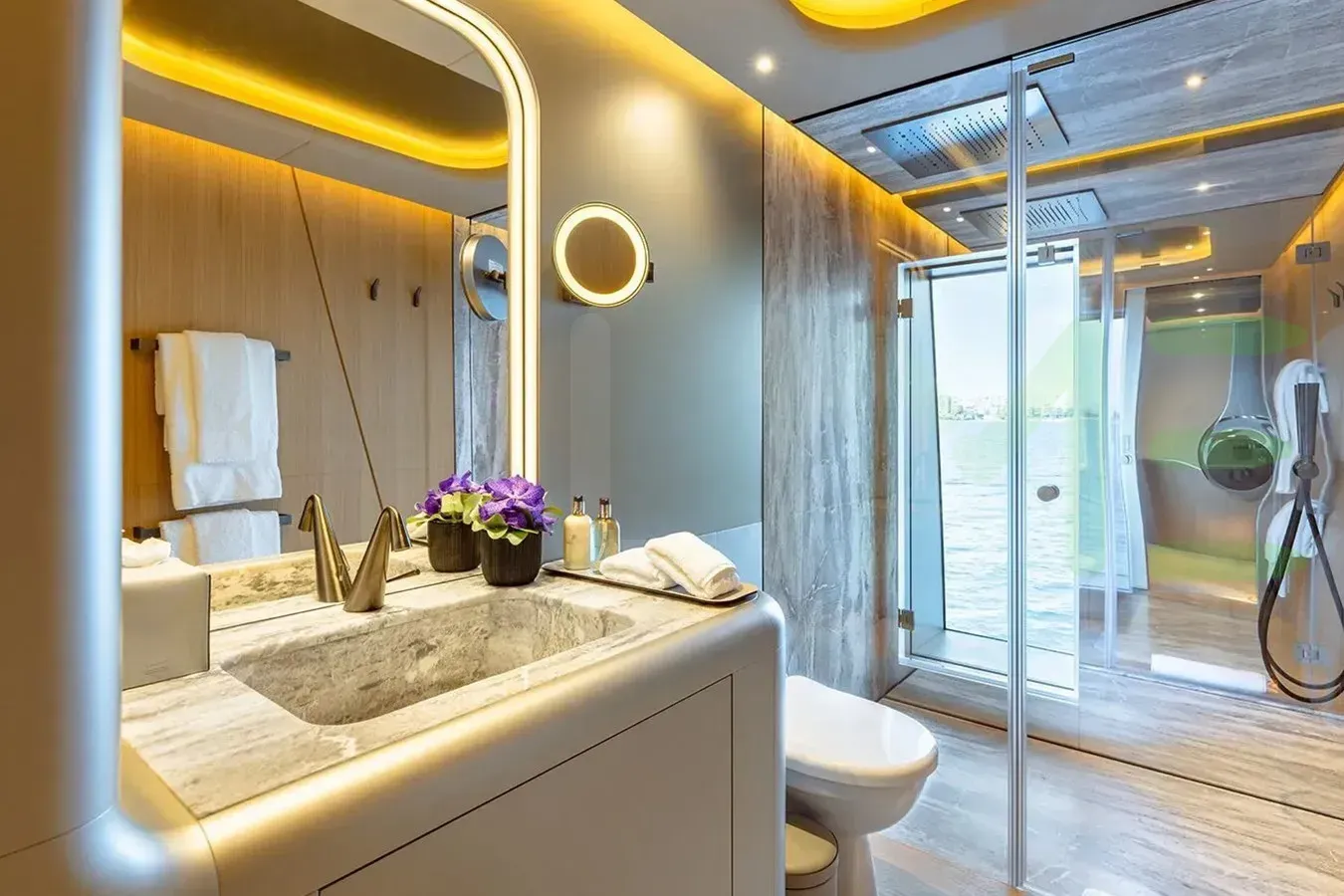 - Premium beauty and wellness amenities, including spa and sauna