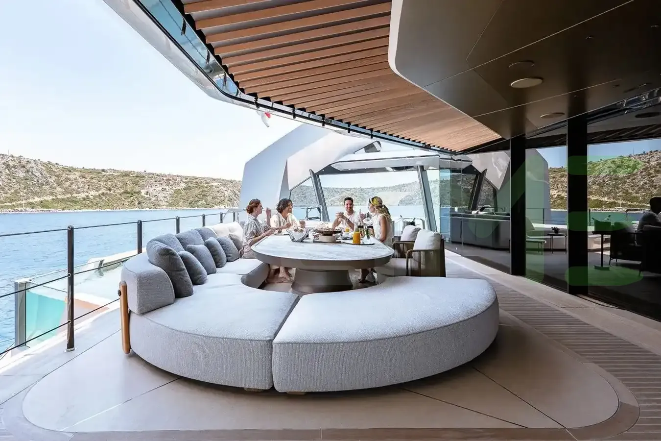 The exterior, designed by The Italian Sea Group, captures your attention with beautiful lines and impeccable craftsmanship. Whether you're lounging on the spacious decks or enjoying water sports in a secluded anchorage, the THIS IS IT I yacht for charter, built of Aluminium, offers a wealth of opportunities for relaxation and adventure.