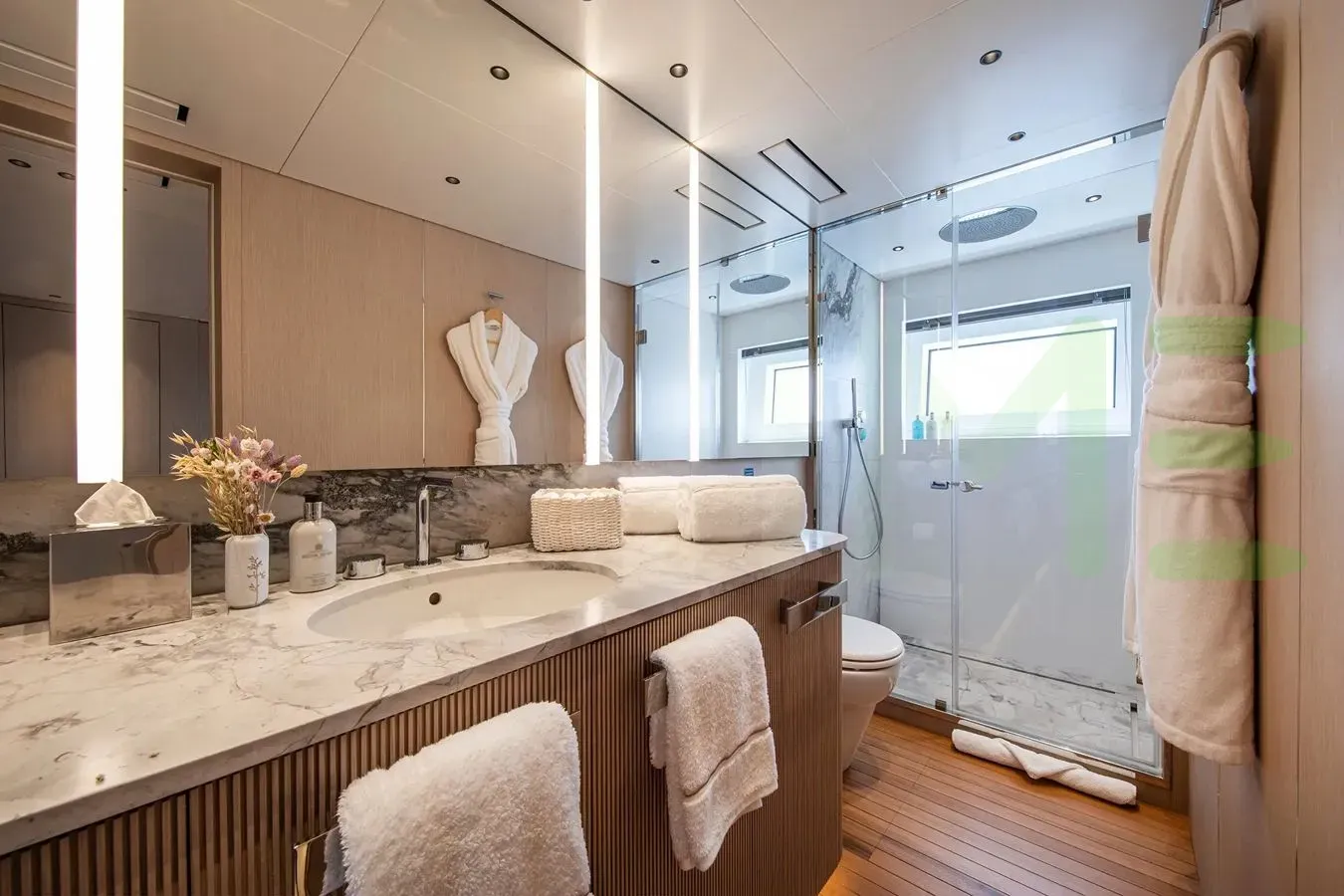 Manned by a dedicated crew of 9 professionals, your every need will be catered to with the utmost attention to detail. The TOSUN Yacht for charter is the epitome of refined luxury, making it the ideal choice for those seeking an unforgettable charter experience. Embark on a journey of a lifetime aboard motoryacht TOSUN, where every moment is crafted to perfection.