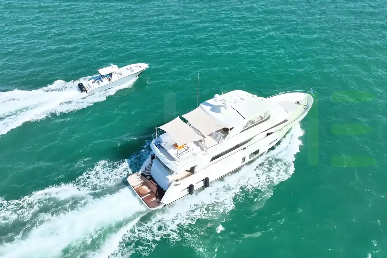 Built by Ocean Alexander in Taiwan, this stunning yacht boasts a length of 85' 9" (26.14m), a beam of 20' 1" (6.12m), and a draft of 5' 11" (1.8m).