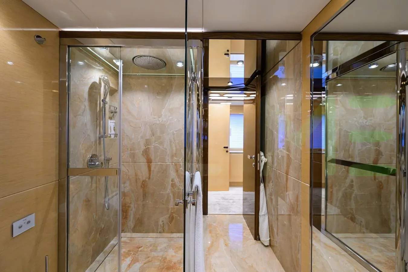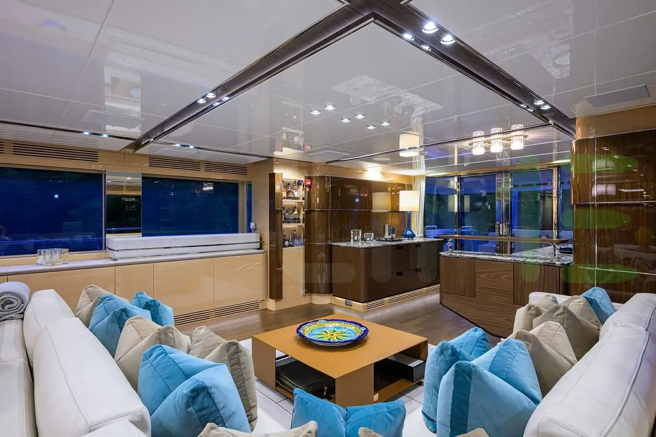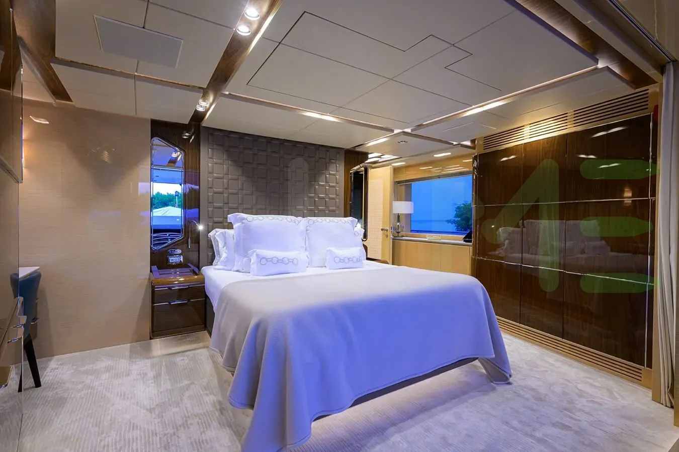 Her features include underwater lights, deck jacuzzi, WiFi and air conditioning.