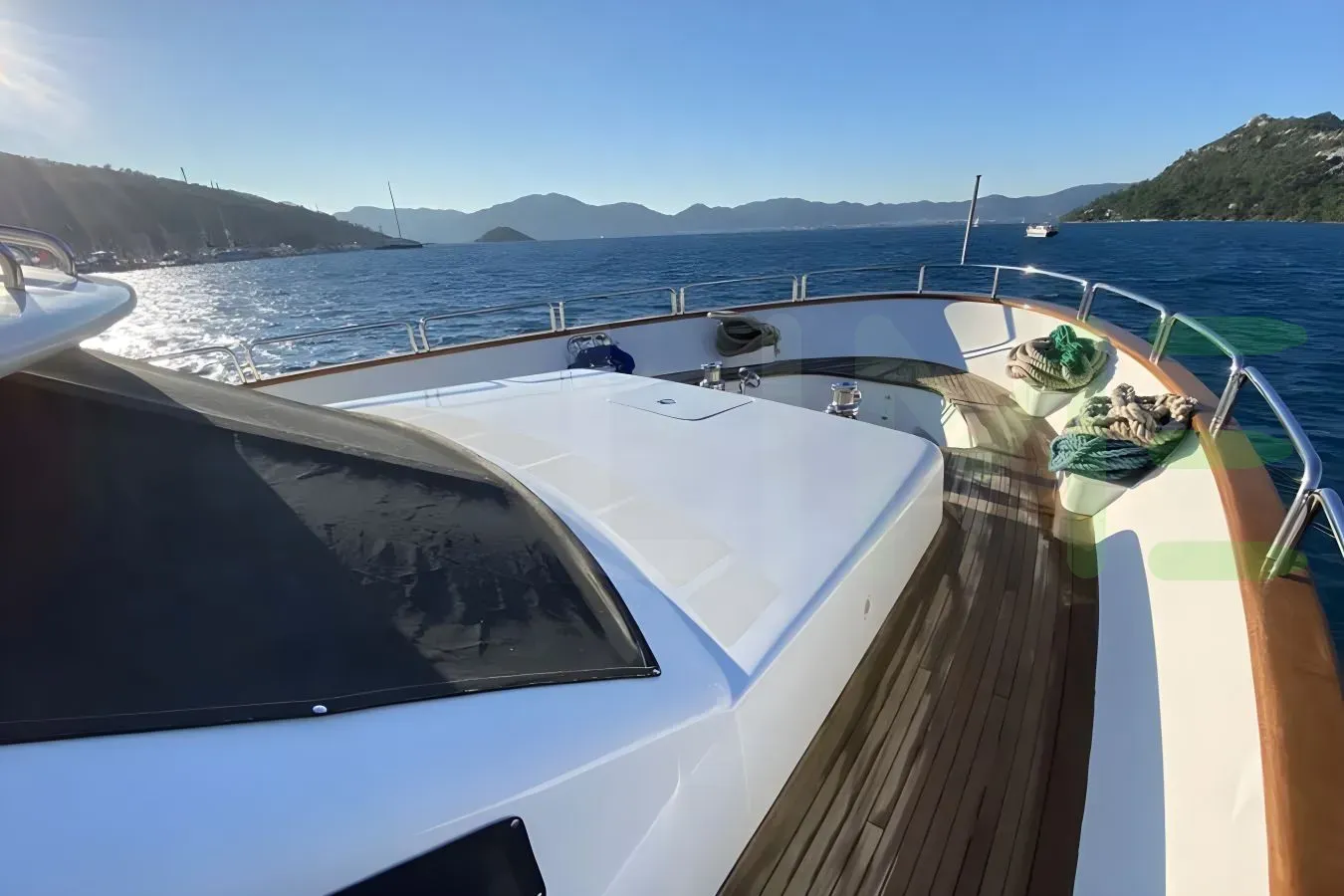 Indulge in the opulent comforts of spacious lounges, gourmet dining areas, and elegantly appointed staterooms. Savor the breathtaking views from the open decks, unwind on a sun lounge, or stay active in the water. For adventure enthusiasts, the TURK'S motoryacht is equipped with an array of water toys. Dive into the crystal-clear waters for a refreshing swim, explore hidden coves, or experience the thrill of wakeboarding. With attentive crew members catering to your every need, a yacht charter promises an unforgettable blend of relaxation, luxury, and adventure.