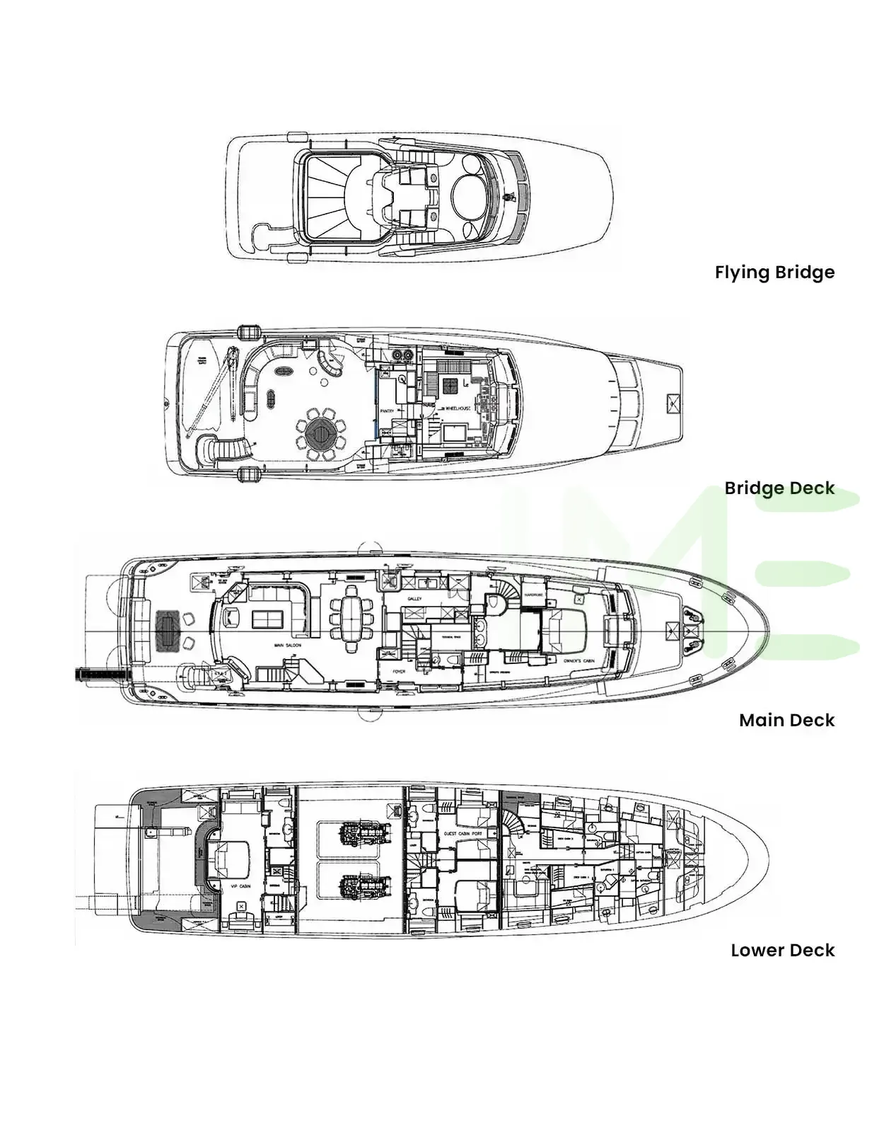Request plans that include the layout of staterooms, guest areas, and outdoor spaces, as well as crew quarters and work areas.
