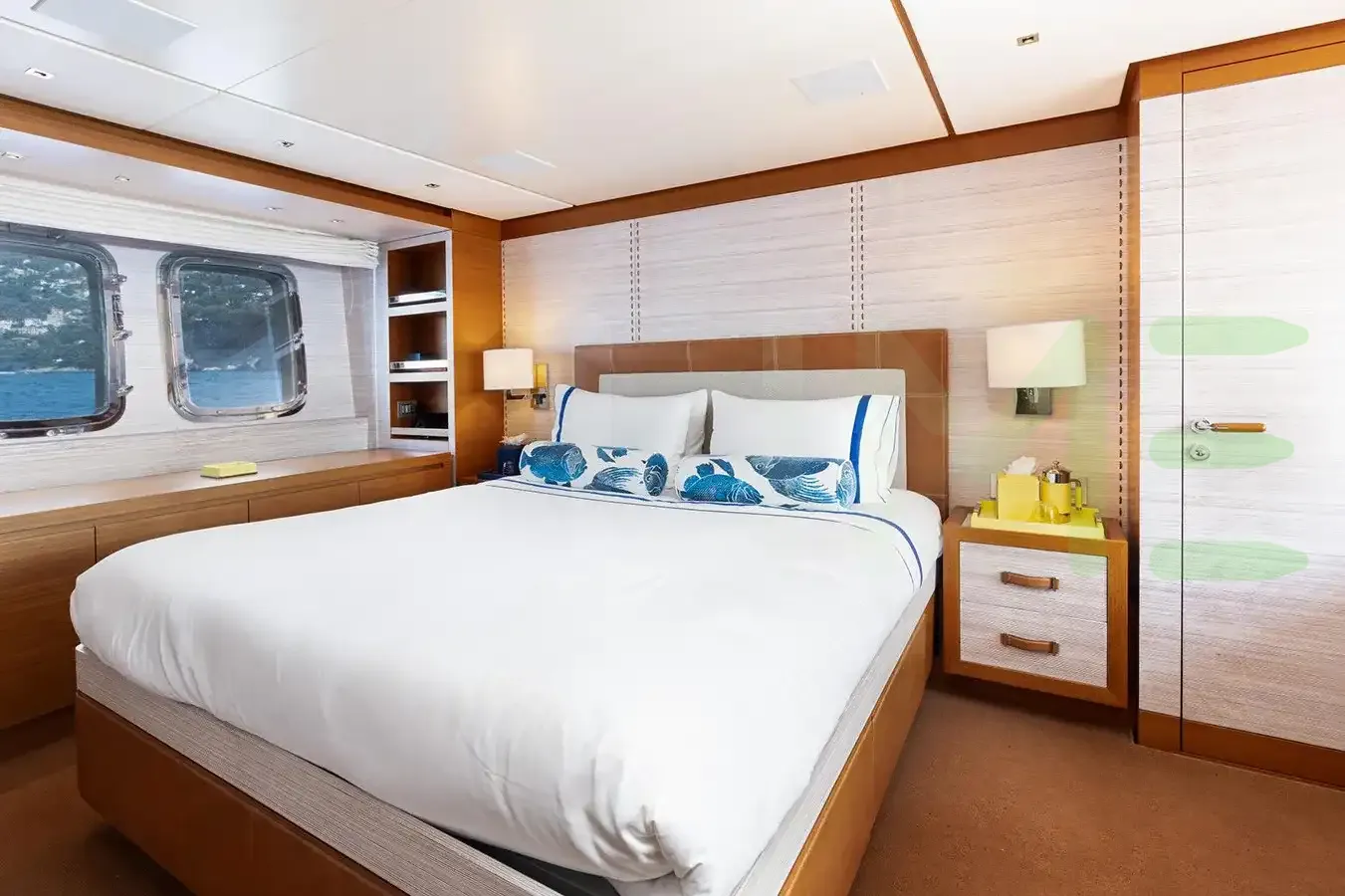 With a gross tonnage of 113, the TWIN FISH yacht for charter provides ample interior space for enjoyment. TWIN FISH offers accommodations for up to 8 guests in 4 lavishly appointed staterooms. She can also carry up to 3 crew onboard, including the Captain, to ensure a relaxed luxury yacht charter experience. The interior design by Studio Laura Sessa exudes a sense of luxury, seamlessly blending comfort with style.