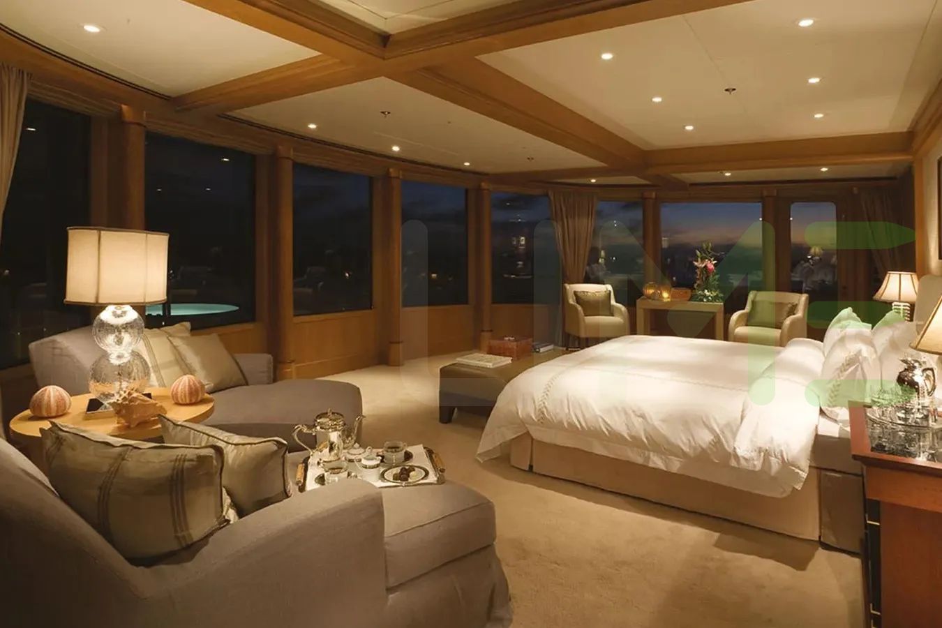 - Floor-to-ceiling windows feature throughout vessel