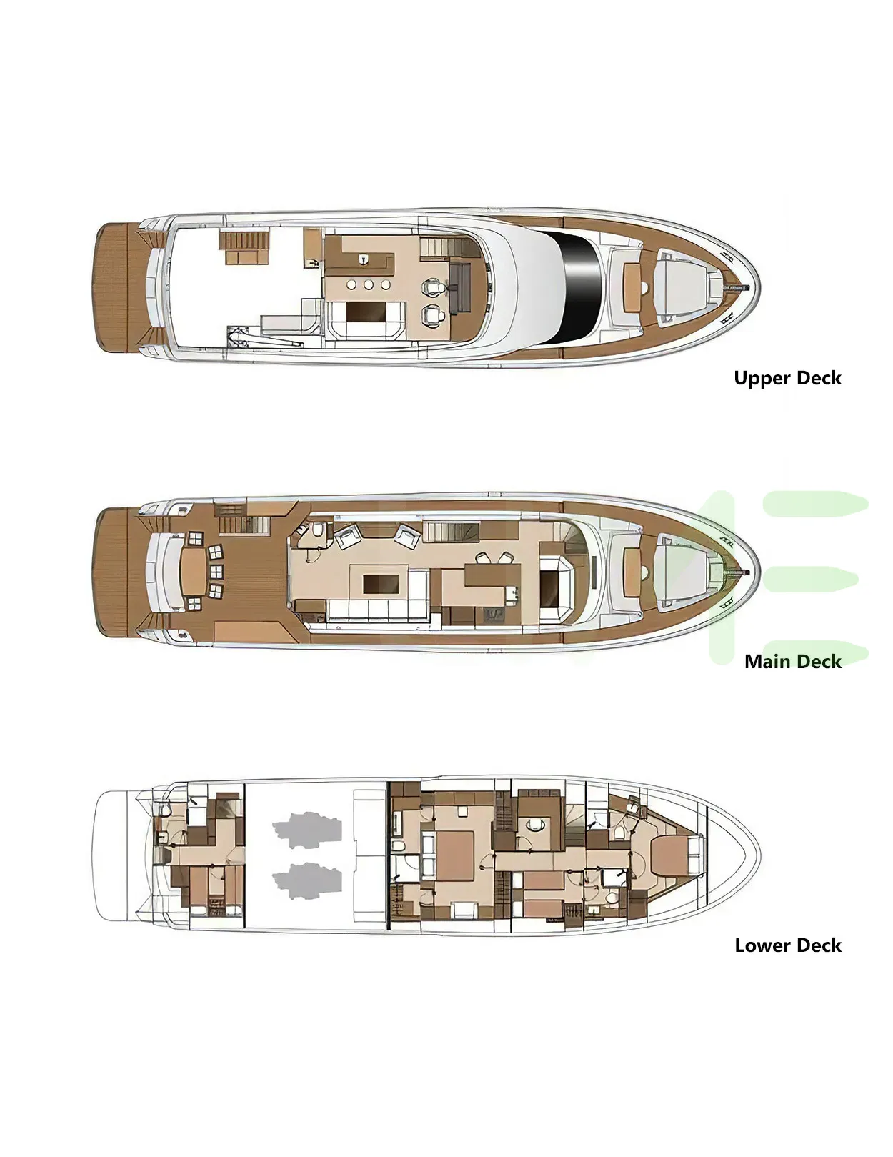 Request plans that include the layout of staterooms, guest areas, and outdoor spaces, as well as crew quarters and work areas.