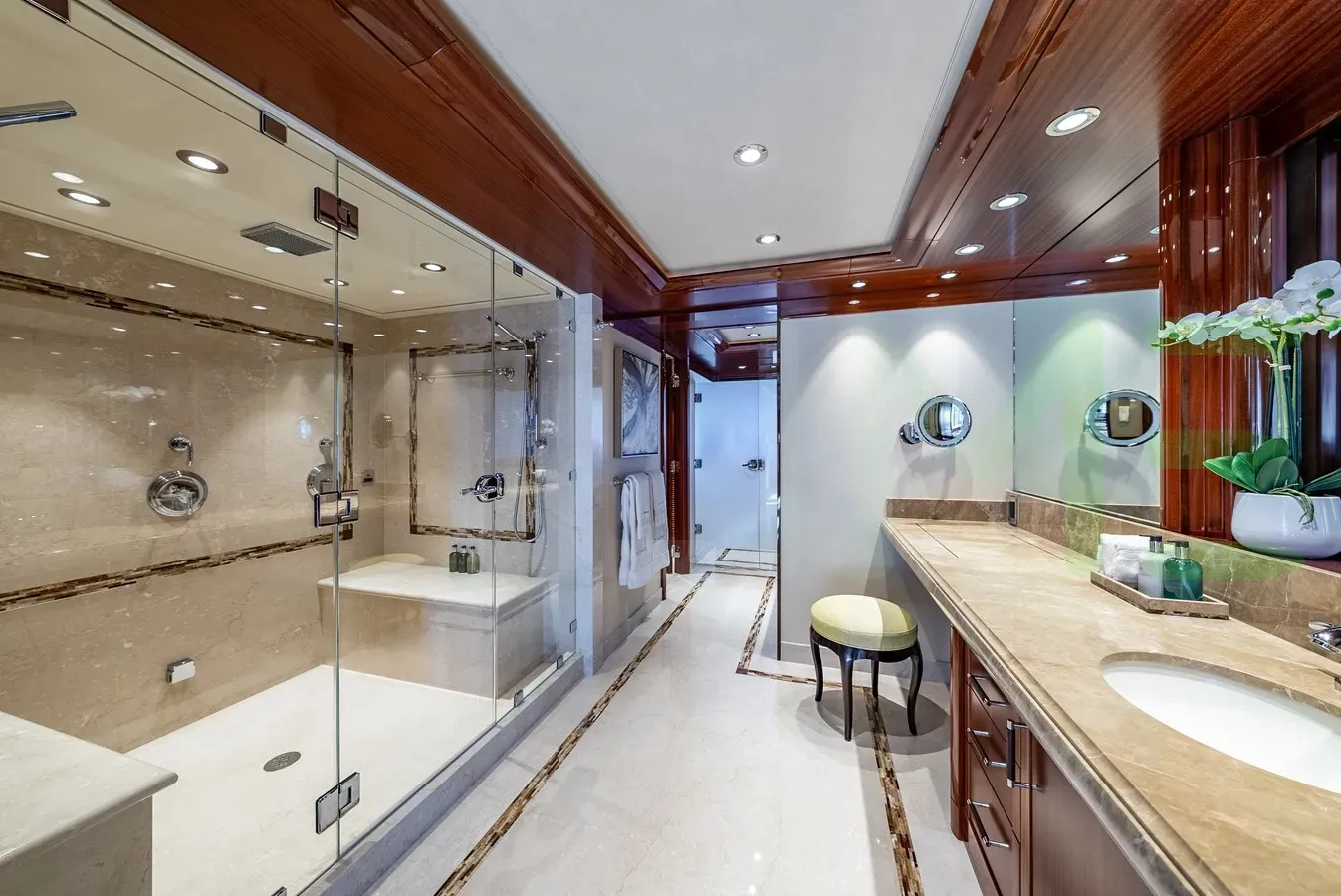 With a gross tonnage of 492, the VALINOR yacht for charter provides ample interior space for enjoyment. VALINOR offers accommodations for up to 12 guests in 6 lavishly appointed staterooms. She can also carry up to 12 crew onboard, including the Captain, to ensure a relaxed luxury yacht charter experience. The interior design by Donald Starkey Designs exudes a sense of luxury, seamlessly blending comfort with style.