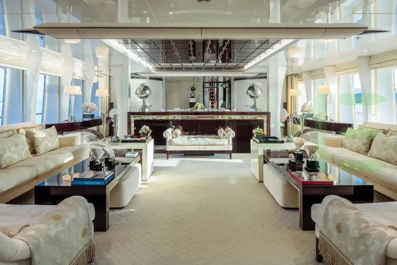 With a gross tonnage of 887, the VERA yacht for charter provides ample interior space for enjoyment. VERA offers accommodations for up to 12 guests in 6 lavishly appointed staterooms. She can also carry up to 10 crew onboard, including the Captain, to ensure a relaxed luxury yacht charter experience. The interior design by Luigi Sturchio exudes a sense of luxury, seamlessly blending comfort with style.