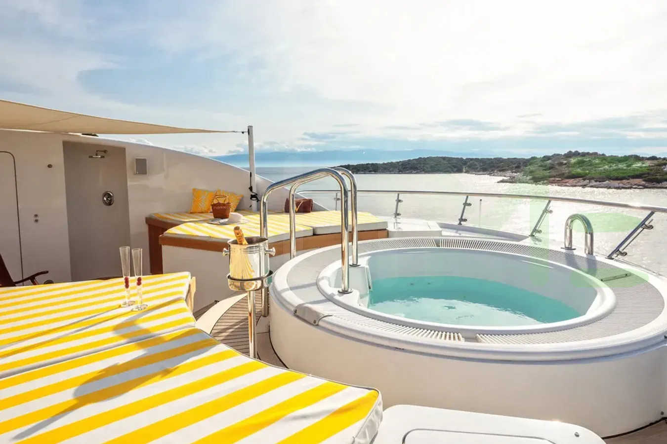Keeping comfortable and entertained on Vera is easy thanks to the available amenities such as a gym with all the latest equipment to maintain your fitness routine. Sit back with a glass of champagne in the deck jacuzzi.