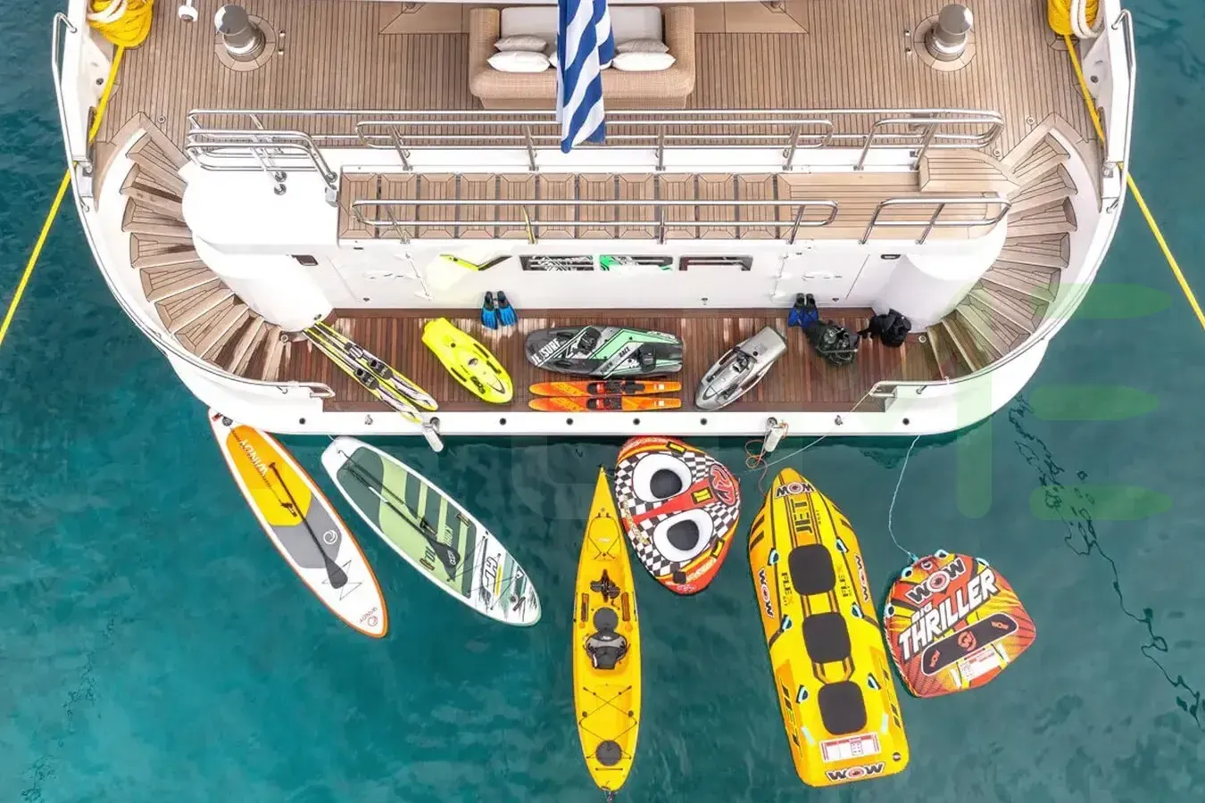 Indulge in the opulent comforts of spacious lounges, gourmet dining areas, and elegantly appointed staterooms. Savor the breathtaking views from the open decks, unwind on a sun lounge, or stay active in the water. For adventure enthusiasts, the VERA motoryacht is equipped with an array of water toys. Dive into the crystal-clear waters for a refreshing swim, explore hidden coves, or experience the thrill of wakeboarding. With attentive crew members catering to your every need, a yacht charter promises an unforgettable blend of relaxation, luxury, and adventure.