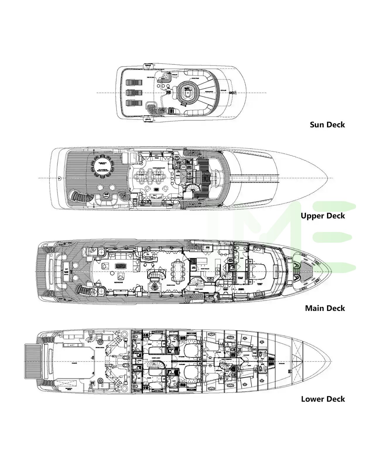 Request plans that include the layout of staterooms, guest areas, and outdoor spaces, as well as crew quarters and work areas.