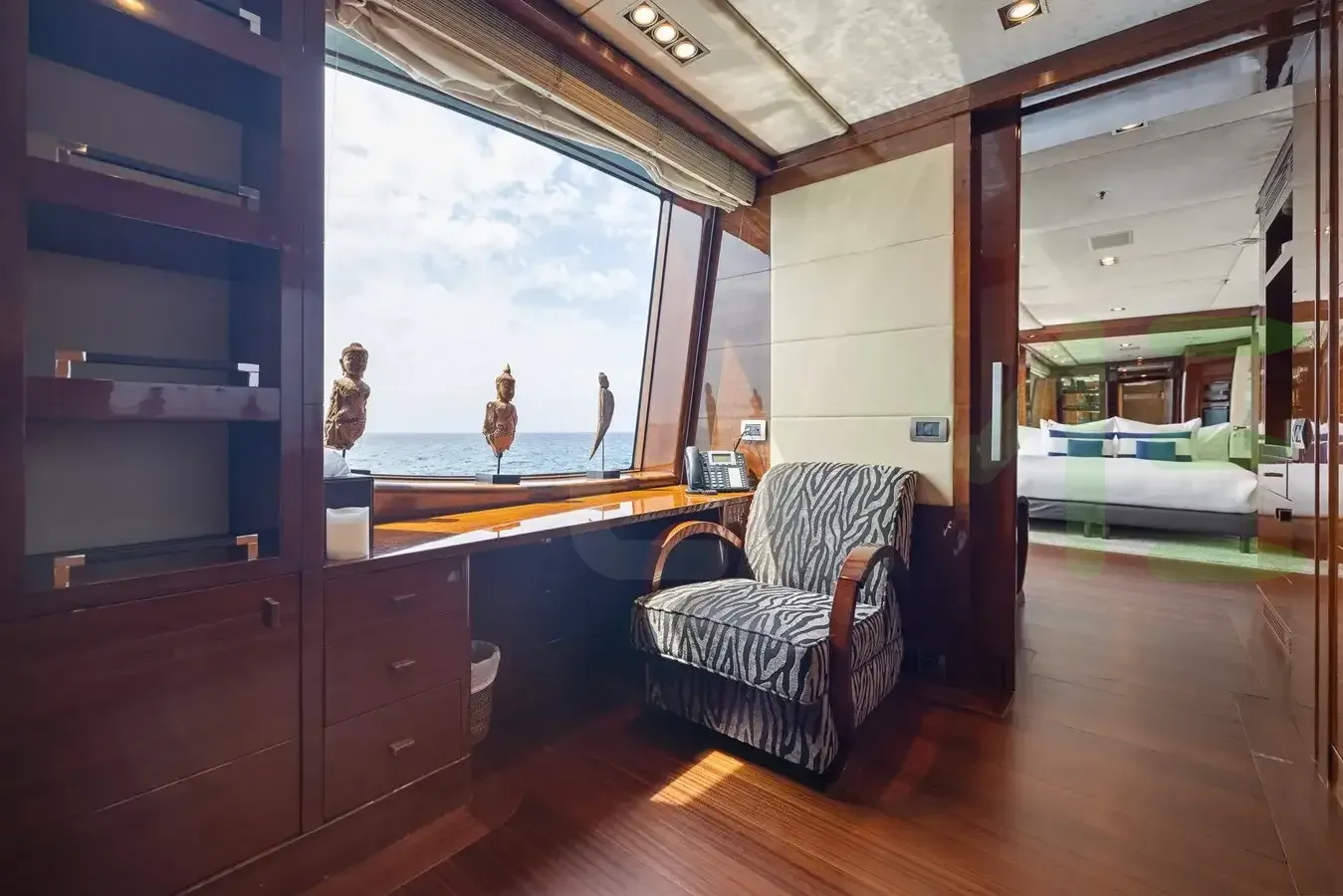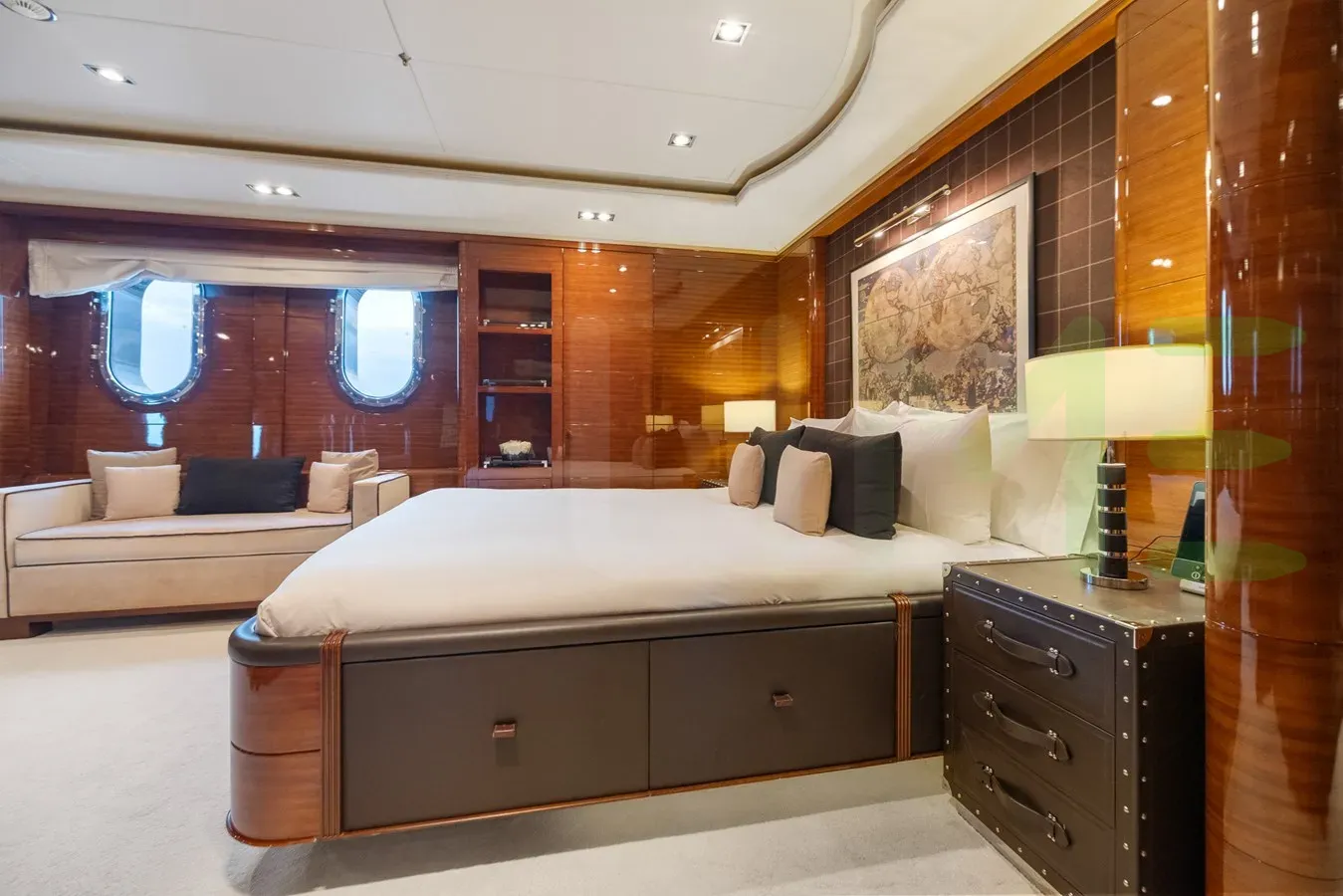 With a gross tonnage of 1,008, the VISION yacht for charter provides ample interior space for enjoyment. VISION offers accommodations for up to 12 guests in 6 lavishly appointed staterooms. She can also carry up to 15 crew onboard, including the Captain, to ensure a relaxed luxury yacht charter experience. The interior design by Zuretti Interior Design, Pierre-Yves Rochon exudes a sense of luxury, seamlessly blending comfort with style.