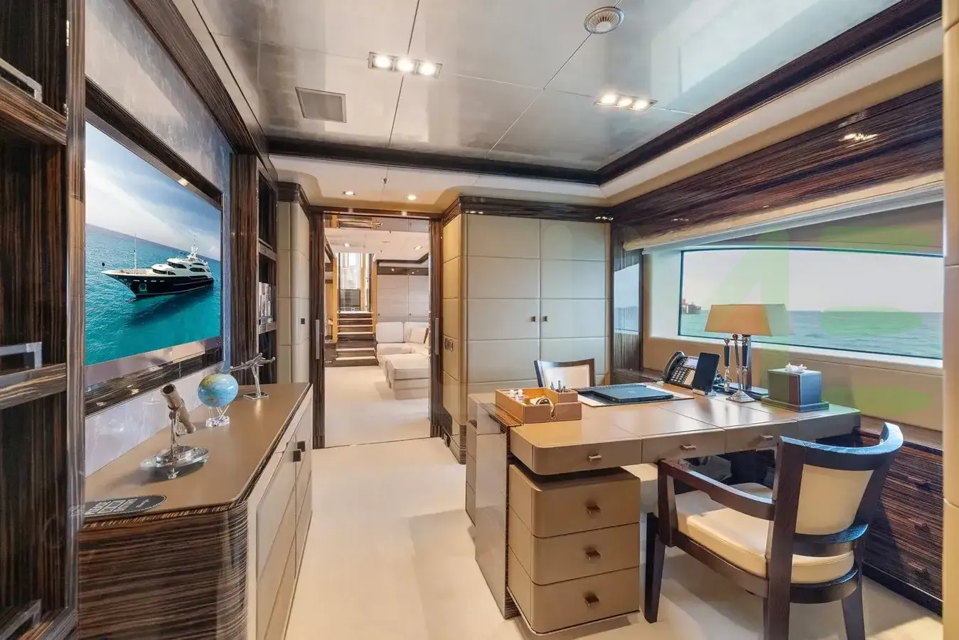 Her features include satellite communications, gym, deck jacuzzi, WiFi and air conditioning.