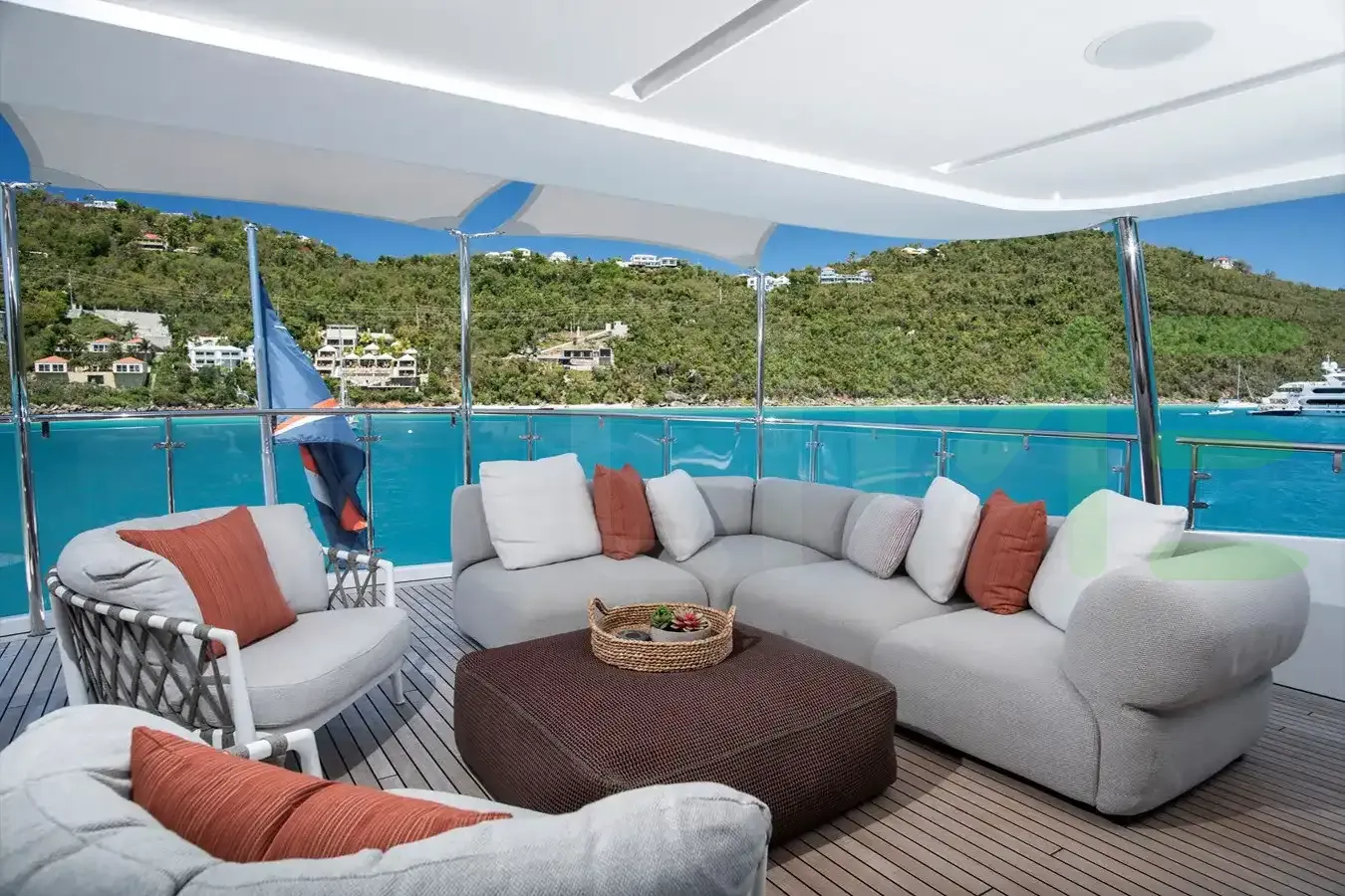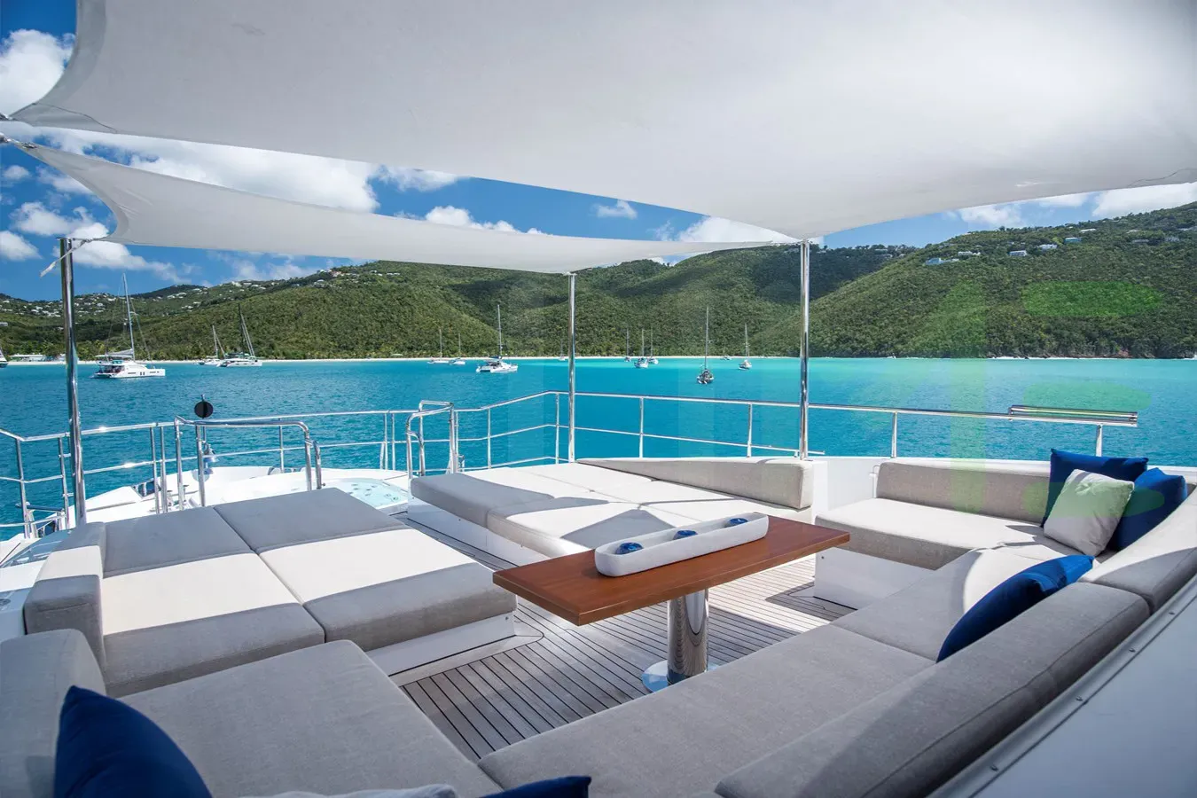 The exterior, designed by Stefano Righini Design, captures your attention with beautiful lines and impeccable craftsmanship. Whether you're lounging on the spacious decks or enjoying water sports in a secluded anchorage, the WABASH yacht for charter, built of GRP, offers a wealth of opportunities for relaxation and adventure.