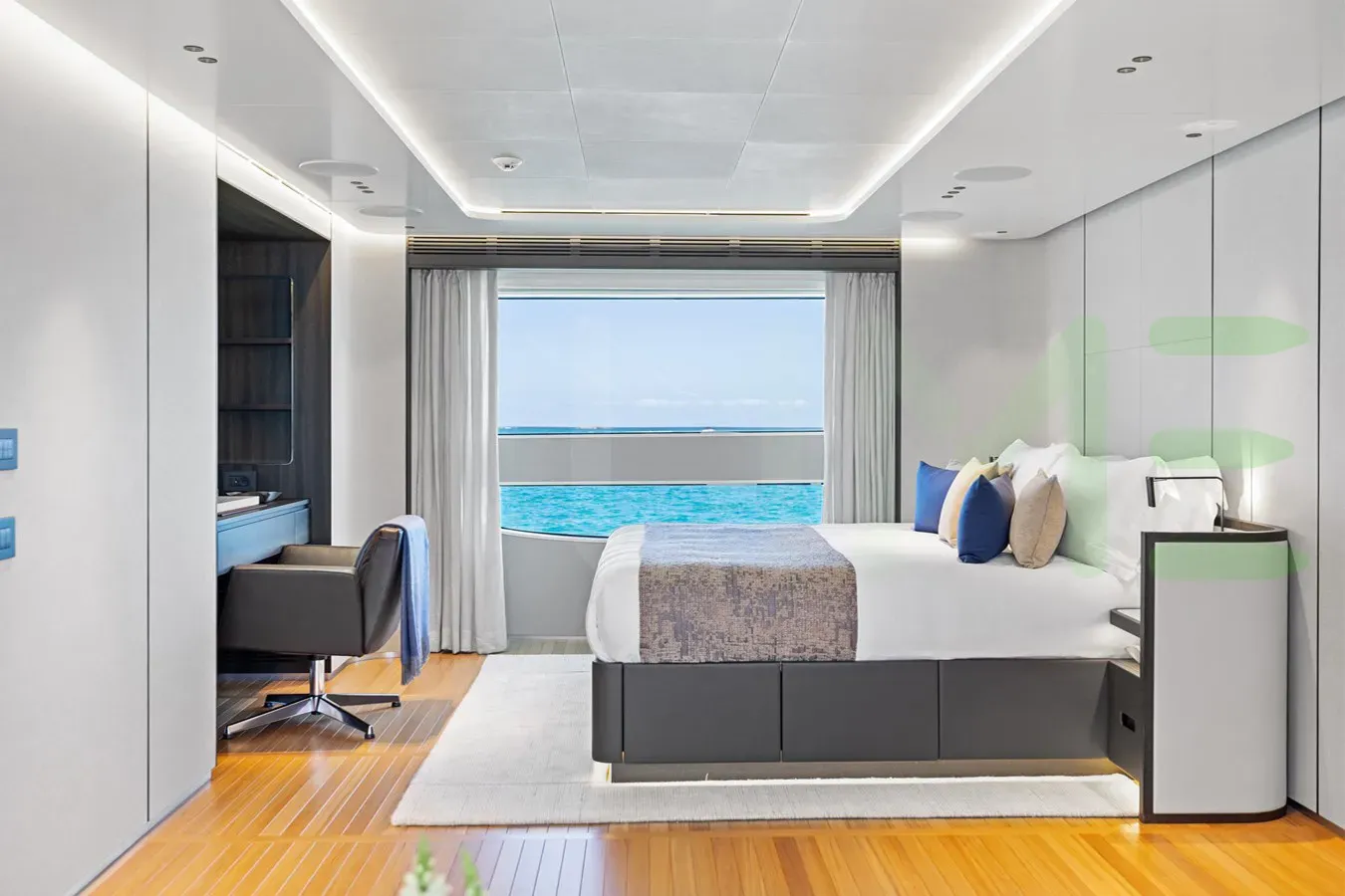 With a gross tonnage of 386, the WAVE yacht for charter provides ample interior space for enjoyment. WAVE offers accommodations for up to 12 guests . She can also carry up to 9 crew onboard, including the Captain, to ensure a relaxed luxury yacht charter experience. The interior design by Bonetti / Kozerski architecture DPC exudes a sense of luxury, seamlessly blending comfort with style.