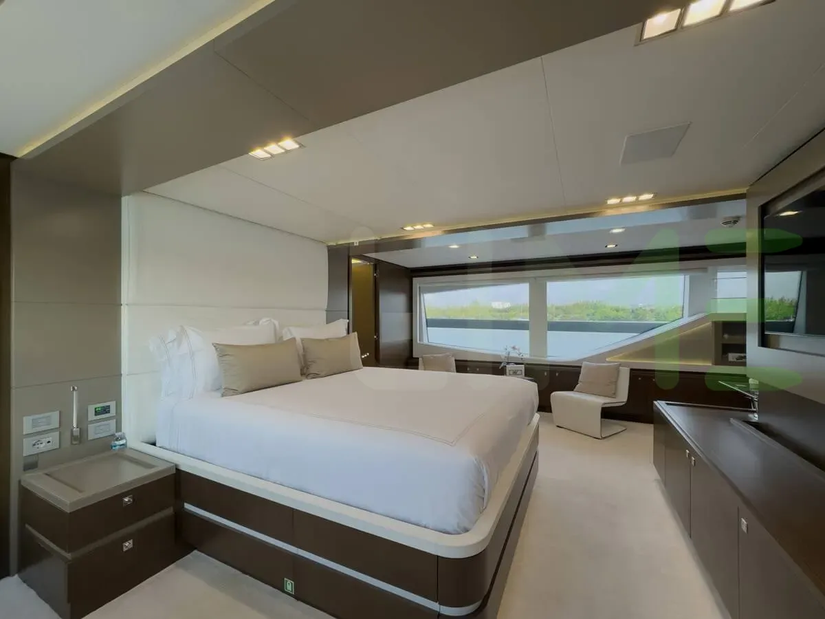 Built by Custom Line in Italy, this stunning yacht boasts a length of 100' 5" (30.6m), a beam of 23' 9" (7.25m), and a draft of 6' 6" (1.97m).