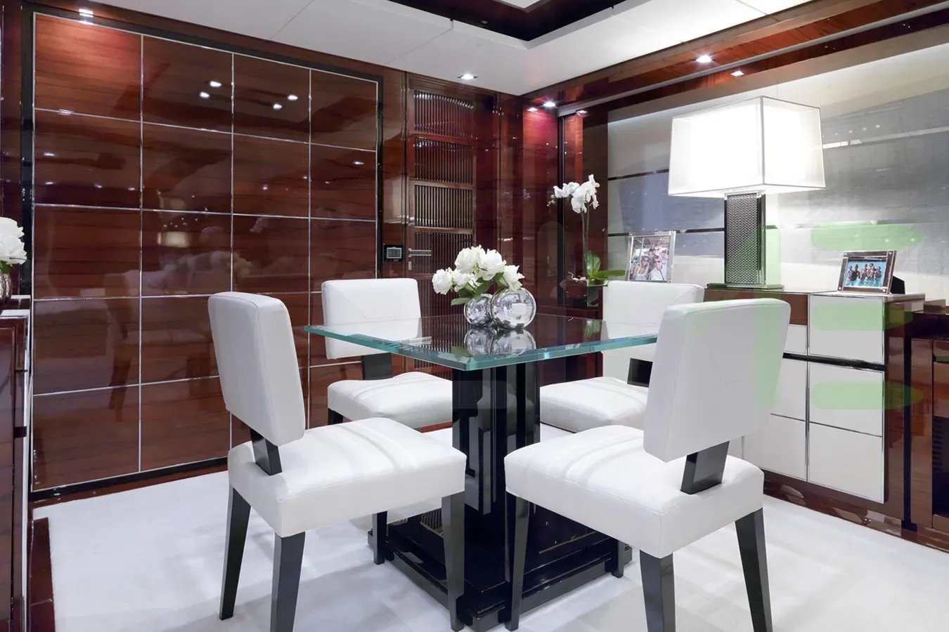 With a gross tonnage of 498, the WILD ORCHID I yacht for charter provides ample interior space for enjoyment. WILD ORCHID I offers accommodations for up to 12 guests in 5 lavishly appointed staterooms. She can also carry up to 9 crew onboard, including the Captain, to ensure a relaxed luxury yacht charter experience. The interior design by Galeazzi Design exudes a sense of luxury, seamlessly blending comfort with style.