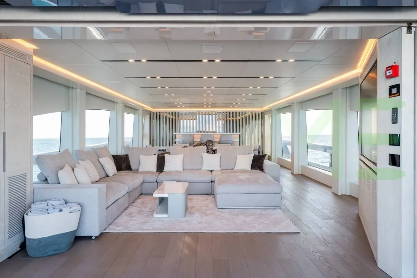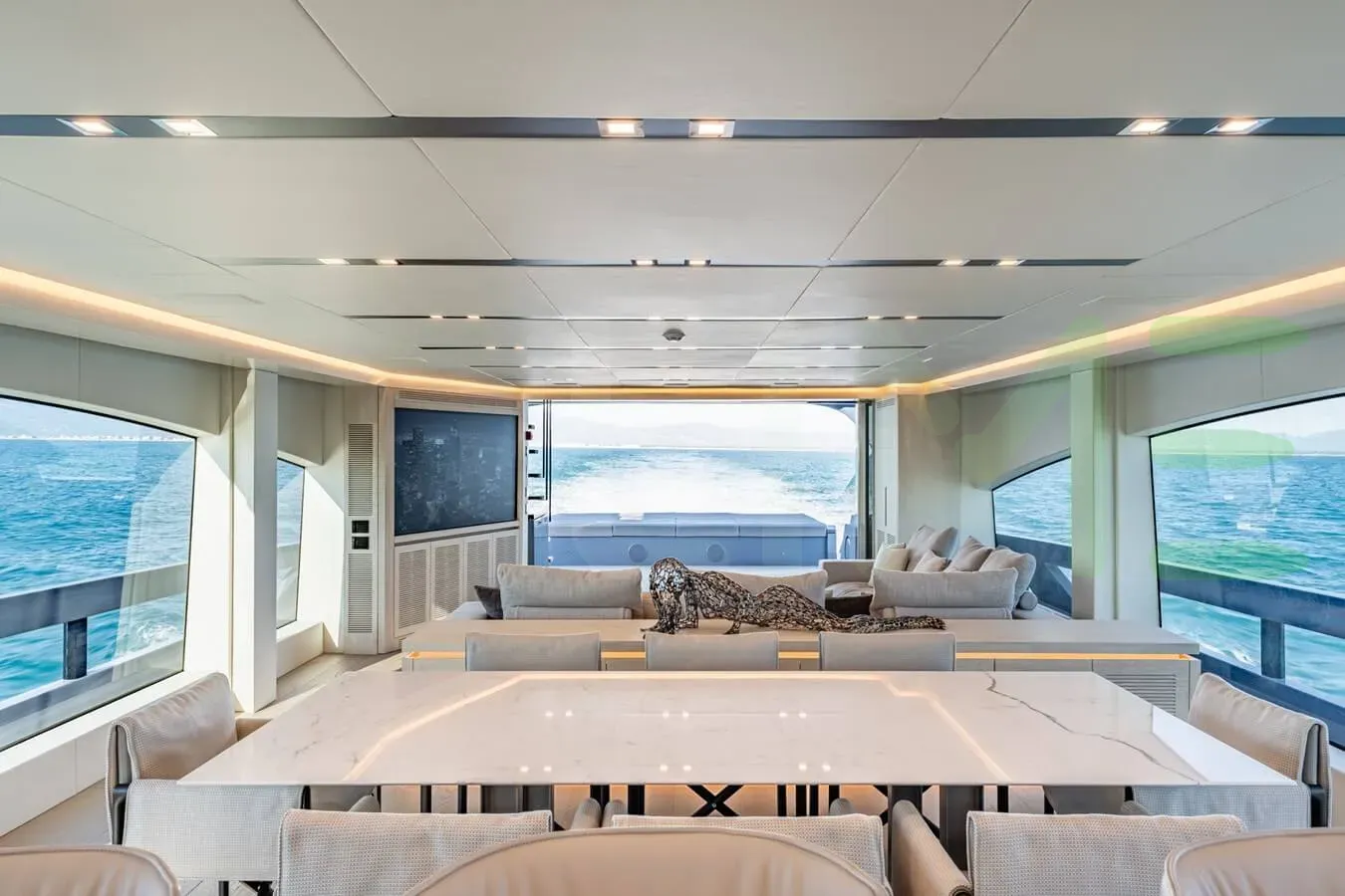 The exterior, designed by AB Yachts, captures your attention with beautiful lines and impeccable craftsmanship. Whether you're lounging on the spacious decks or enjoying water sports in a secluded anchorage, the WRAITH yacht for charter, built of GRP, offers a wealth of opportunities for relaxation and adventure.