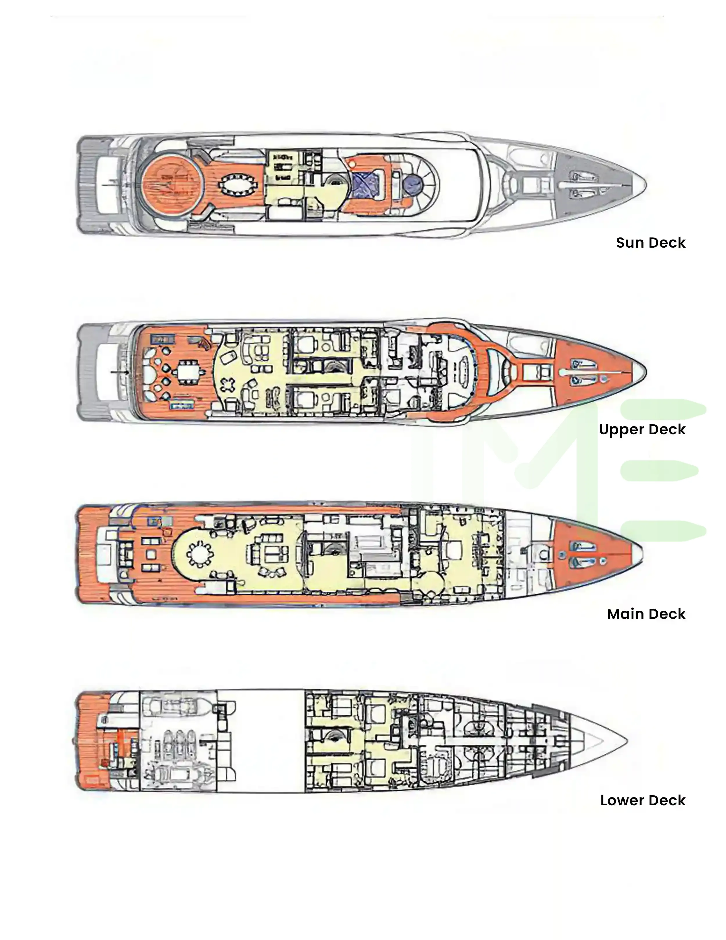 Request plans that include the layout of staterooms, guest areas, and outdoor spaces, as well as crew quarters and work areas.