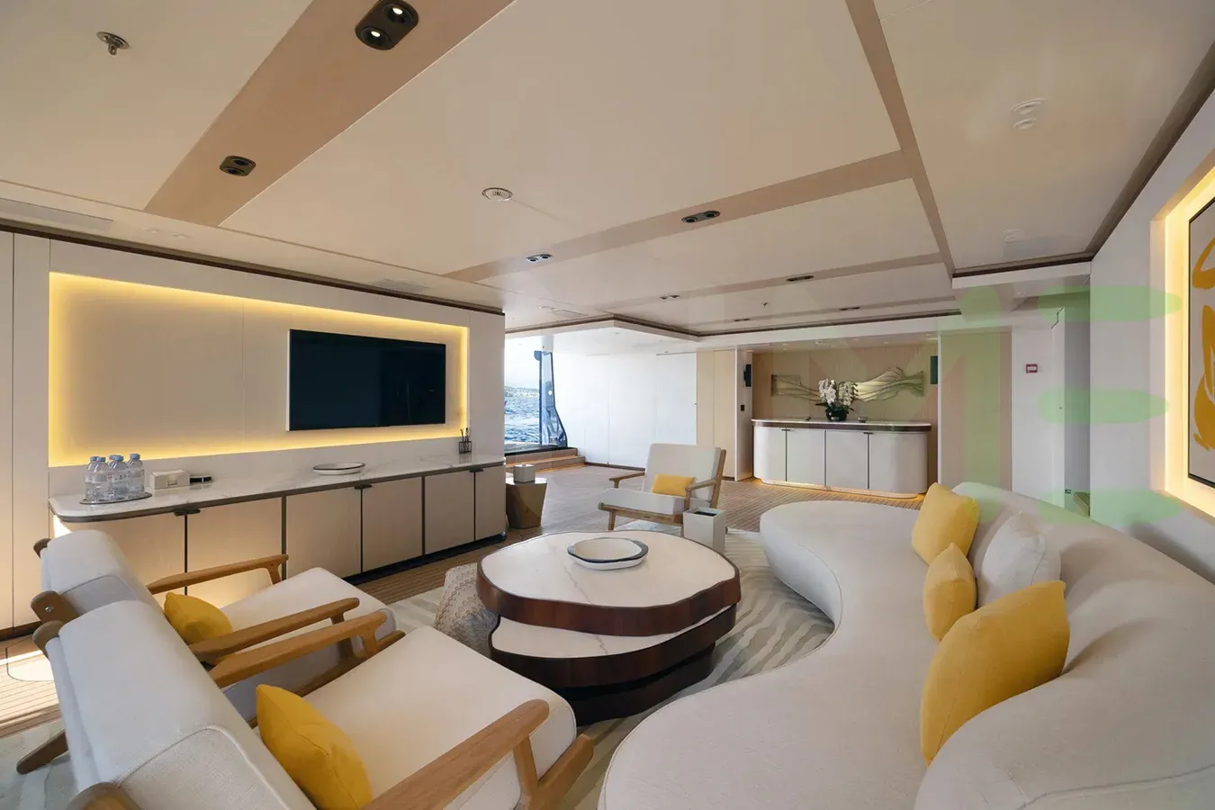 With a gross tonnage of 1,197, the ZAZOU yacht for charter provides ample interior space for enjoyment. ZAZOU offers accommodations for up to 12 guests in 6 lavishly appointed staterooms. She can also carry up to 15 crew onboard, including the Captain, to ensure a relaxed luxury yacht charter experience. The interior design by Sinot Yacht Architecture & Design exudes a sense of luxury, seamlessly blending comfort with style.