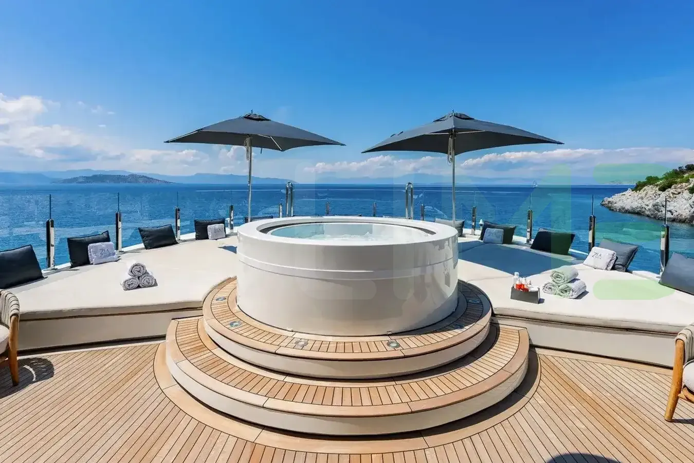 On your charter, you'll find plenty to keep you busy and entertained such as a gym with all the latest equipment to maintain your fitness routine. Soak up the bubbles in style in the deck jacuzzi.