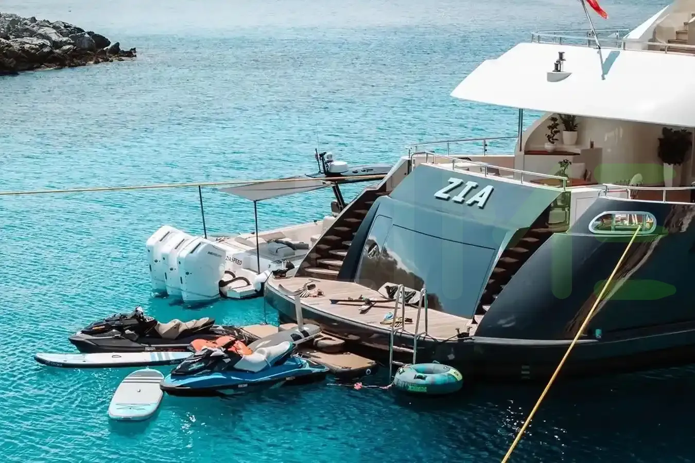 Indulge in the opulent comforts of spacious lounges, gourmet dining areas, and elegantly appointed staterooms. Savor the breathtaking views from the open decks, unwind on a sun lounge, or stay active in the water. For adventure enthusiasts, the ZIA motoryacht is equipped with an array of water toys. Dive into the crystal-clear waters for a refreshing swim, explore hidden coves, or experience the thrill of wakeboarding. With attentive crew members catering to your every need, a yacht charter promises an unforgettable blend of relaxation, luxury, and adventure.