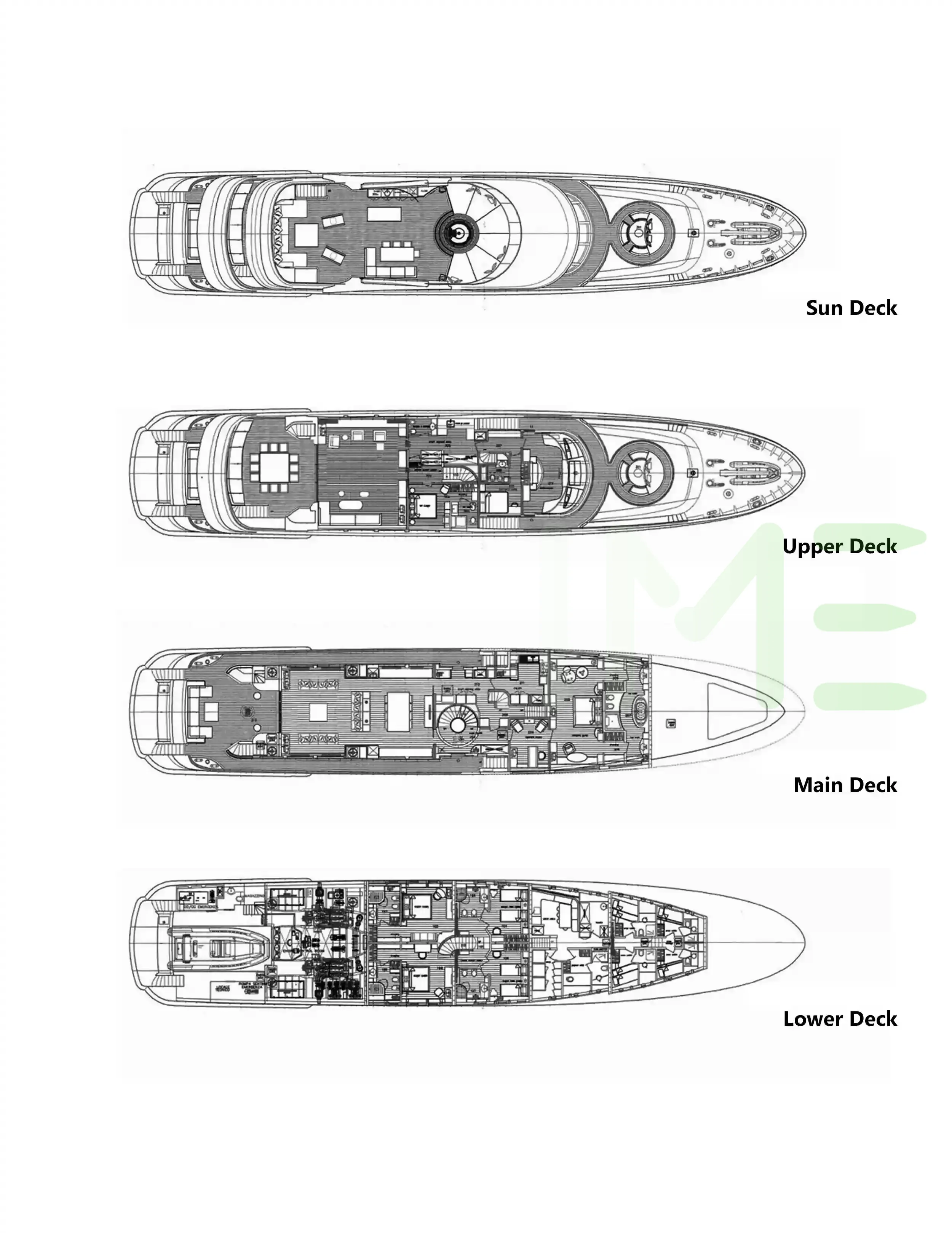Request plans that include the layout of staterooms, guest areas, and outdoor spaces, as well as crew quarters and work areas.