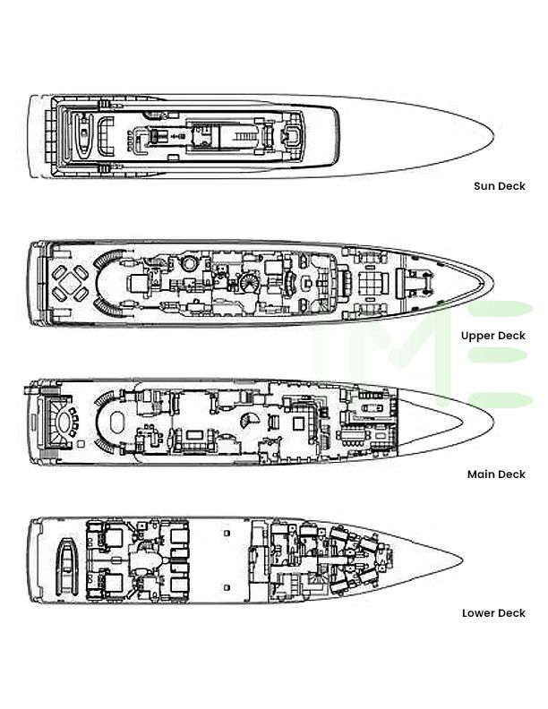 Request plans that include the layout of staterooms, guest areas, and outdoor spaces, as well as crew quarters and work areas.