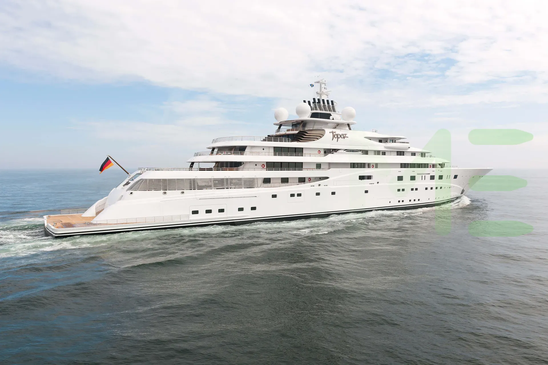 The A+ yacht is a 483-foot (147m) luxury motoryacht. Formerly named TOPAZ, she was built in 2012 by yacht builder, Lürssen, located in Germany. The styling of the A+ yacht features exterior design by Tim Heywood Design Ltd. and interior design by Terence Disdale Design.