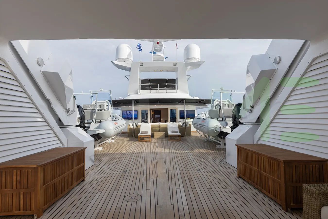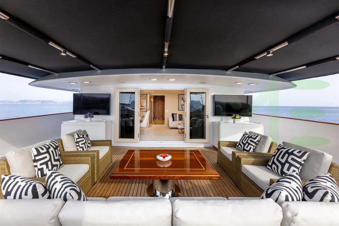 Enhanced by her steel semi-displacement hull, and aluminium superstructure, a higher level of seaworthiness and comfort for those on board the ADAMAS V yacht for sale has been achieved. The visual appeal of the exterior is complimented by the rich color and distinctive grain patterns of teak decks that lend an air of sophistication to the yacht's appearance.