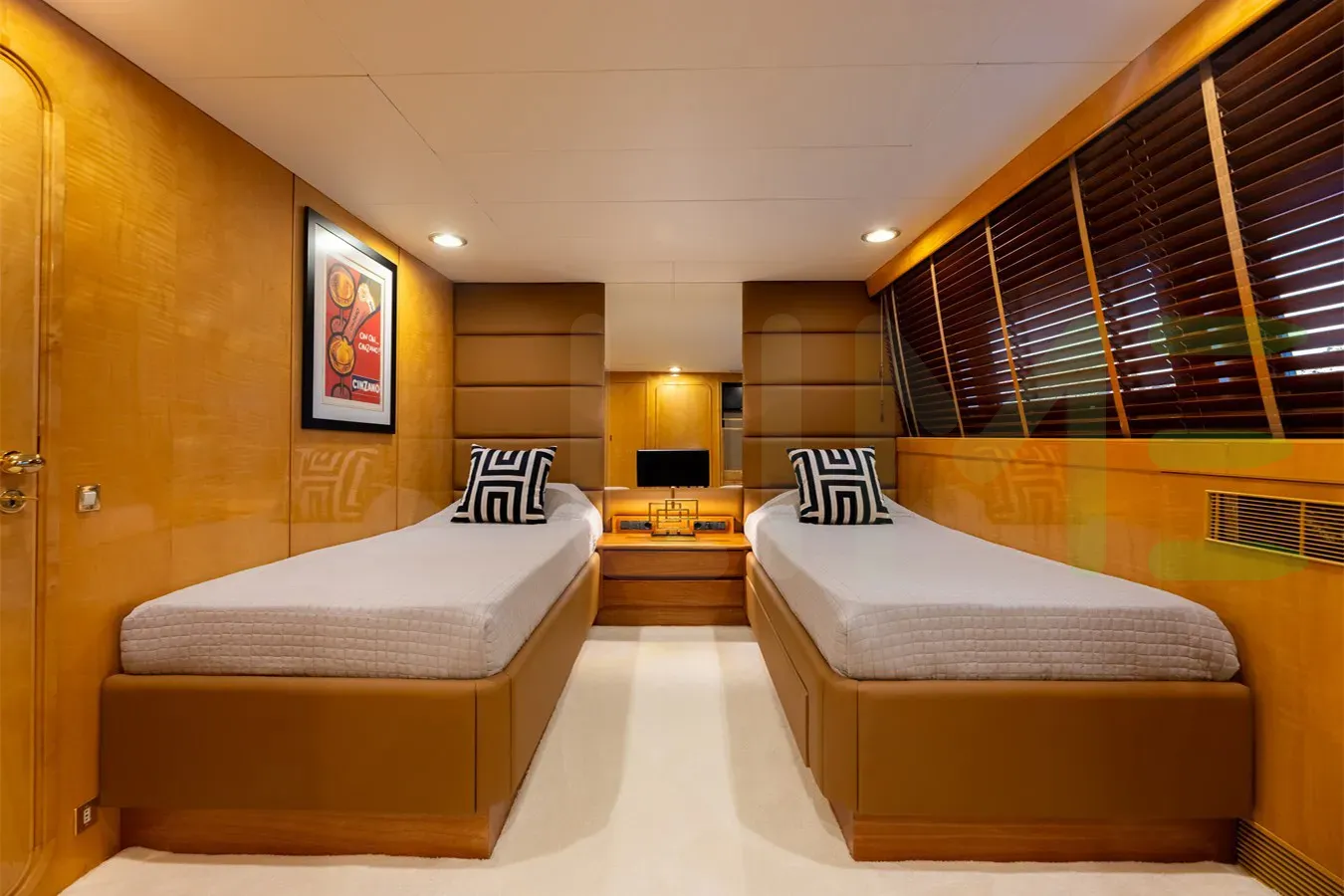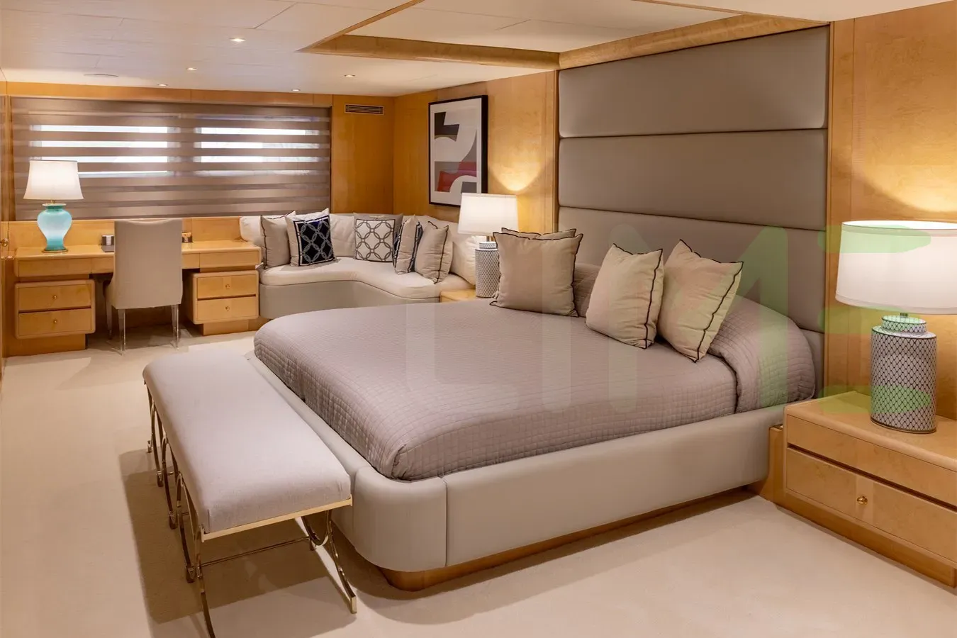 Her features include underwater lights, deck jacuzzi, WiFi and air conditioning.