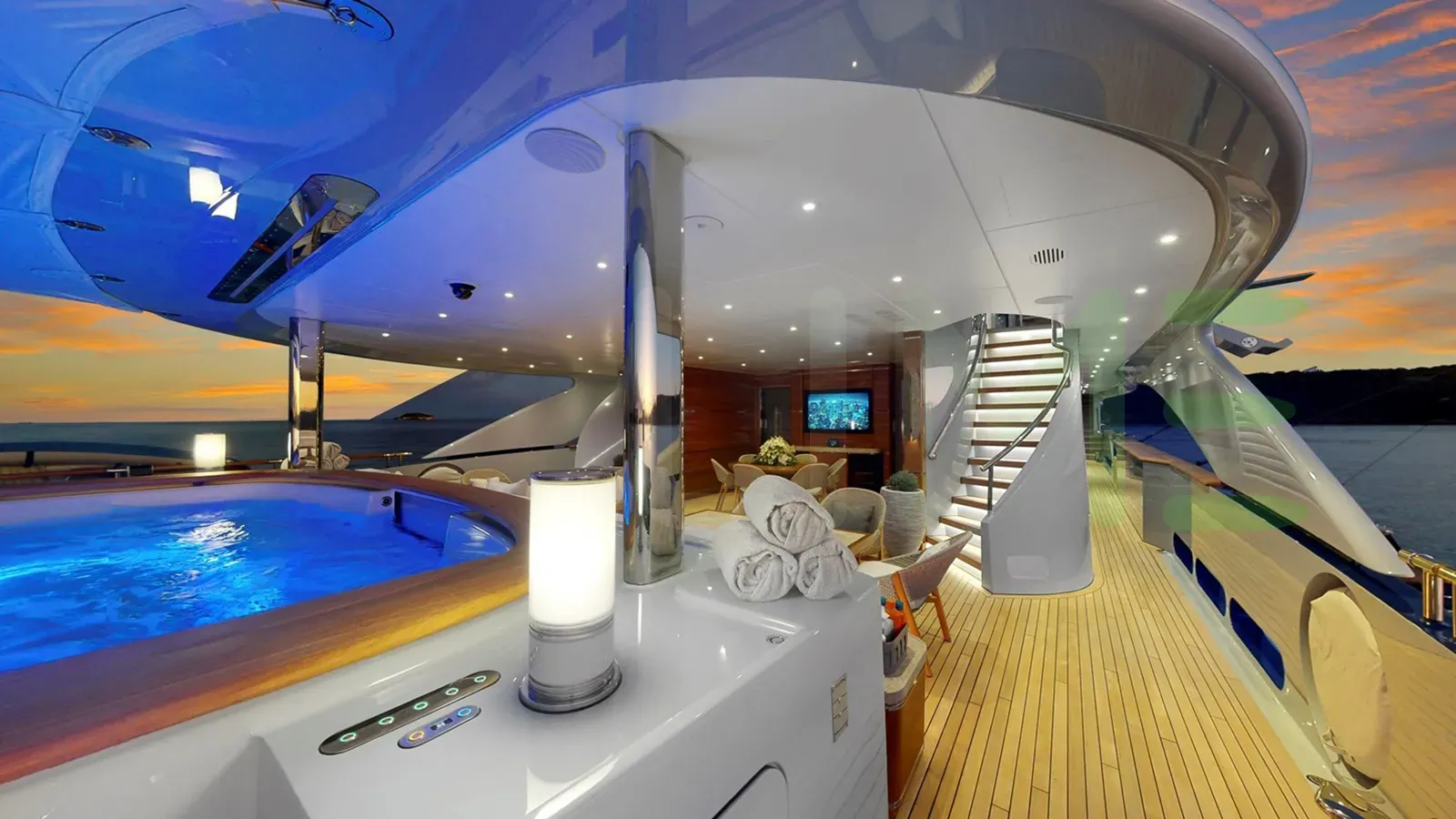 A charter on After You is comfortable and convenient thanks to the provided amenities, notably a serene luxury spa, for the utmost in relaxation. The swimming pool is perfect for exercising or admiring a romantic sunrise. A gym with all the latest equipment is available for a good work out or elsewhere, sit back with a glass of champagne in the deck jacuzzi.