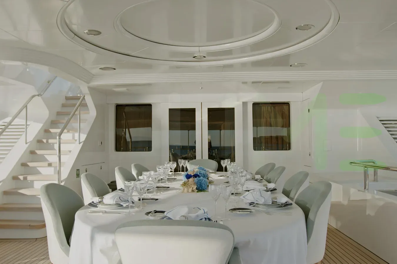 AKIRA ONE is a full-displacement oceangoing mono-hull motoryacht, with a beam of 29' 6" (9 meters), offering stability and comfort during blue water open ocean navigation, including near coastal and inland cruising. Her full-displacement hull shape and draft of 8' 2" (2.5 meters) further contribute to a yacht with a longer range, stowage, and a smooth sailing experience, making her ideal for extended journeys and global travel.